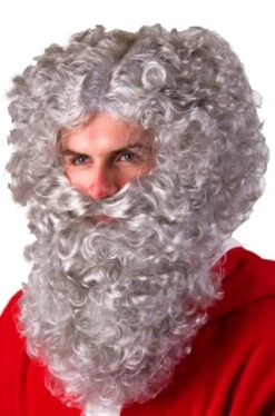 Set Parrucca Barba E Baffi Grigi Ricci Da Mago Negromante E Vecchio