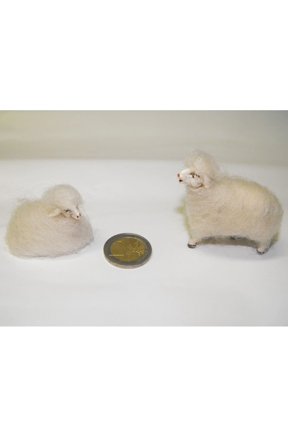 Coppia Pecorella e Agnellino in lana vera avvolta a mano per Presepe