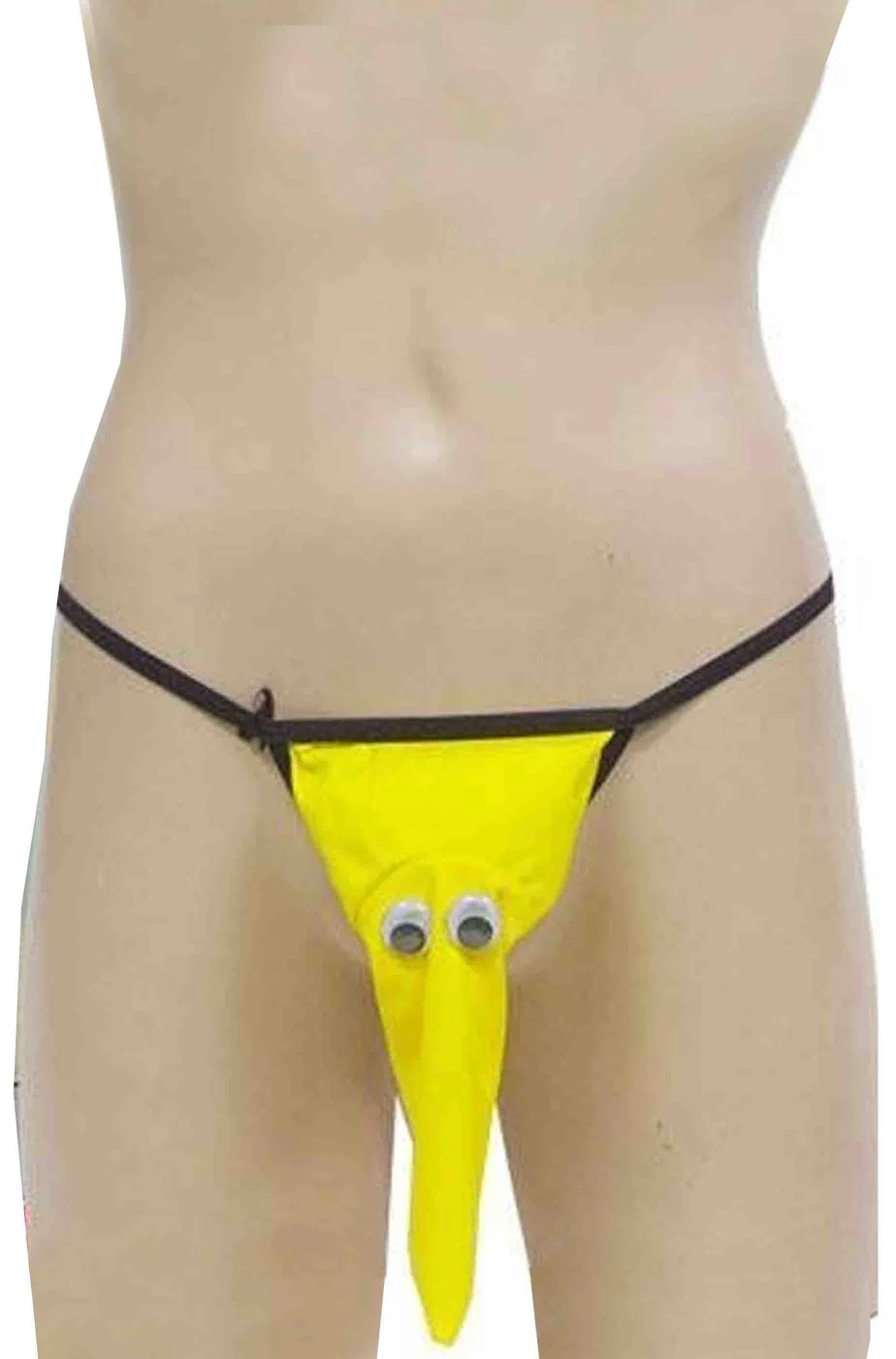Un perizoma da uomo scherzo per matrimoni, addio al celibato, addio al nubilato, compleanno ecc. a forma di banana con occhietti.