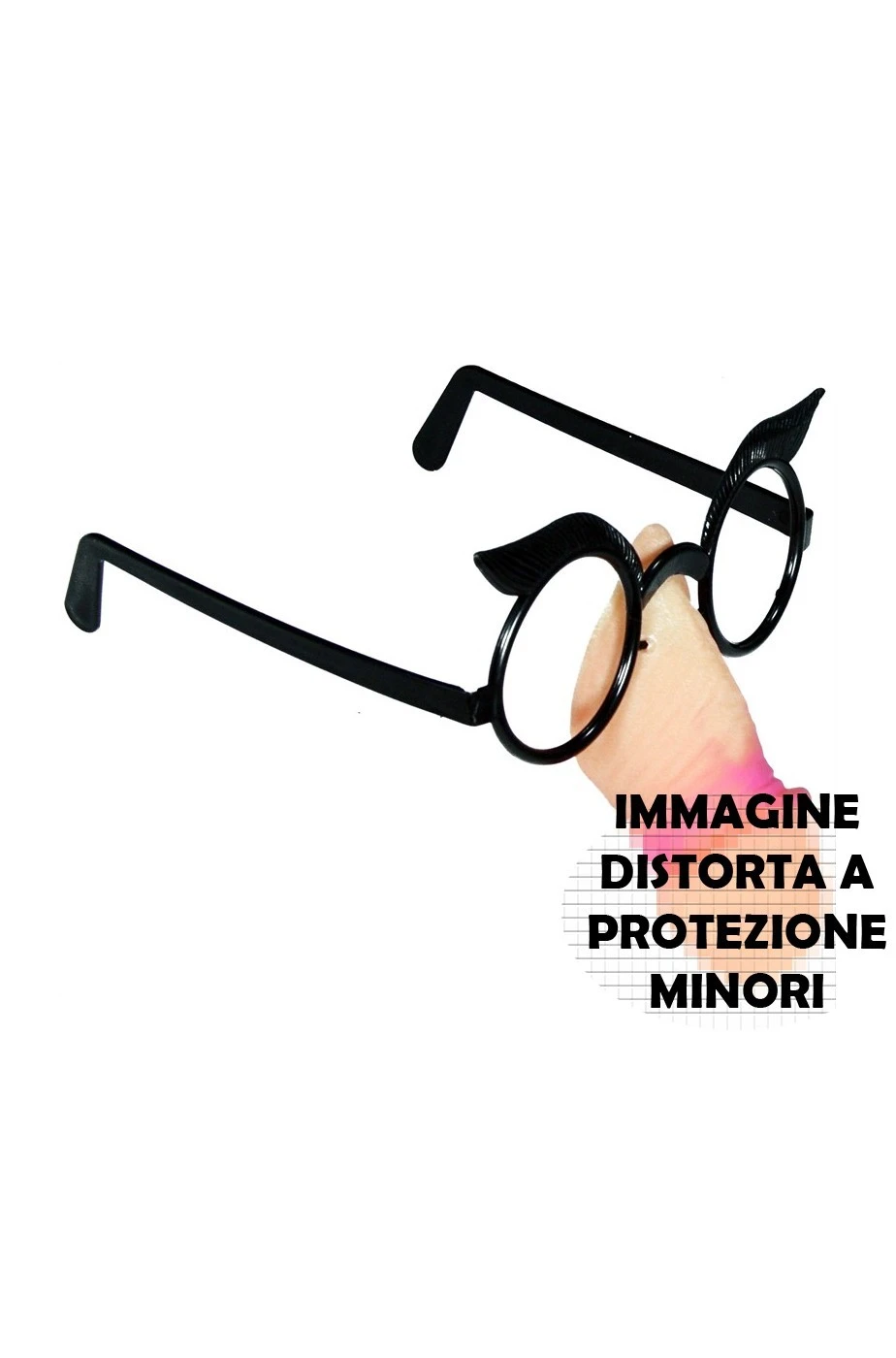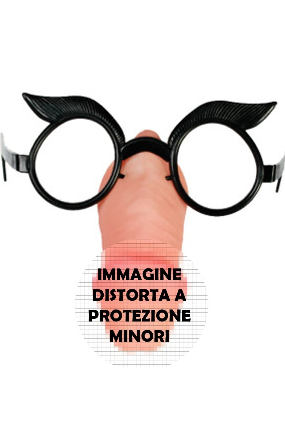 Occhiali scherzo senza lente con sopracciglia e naso a grosso pene.