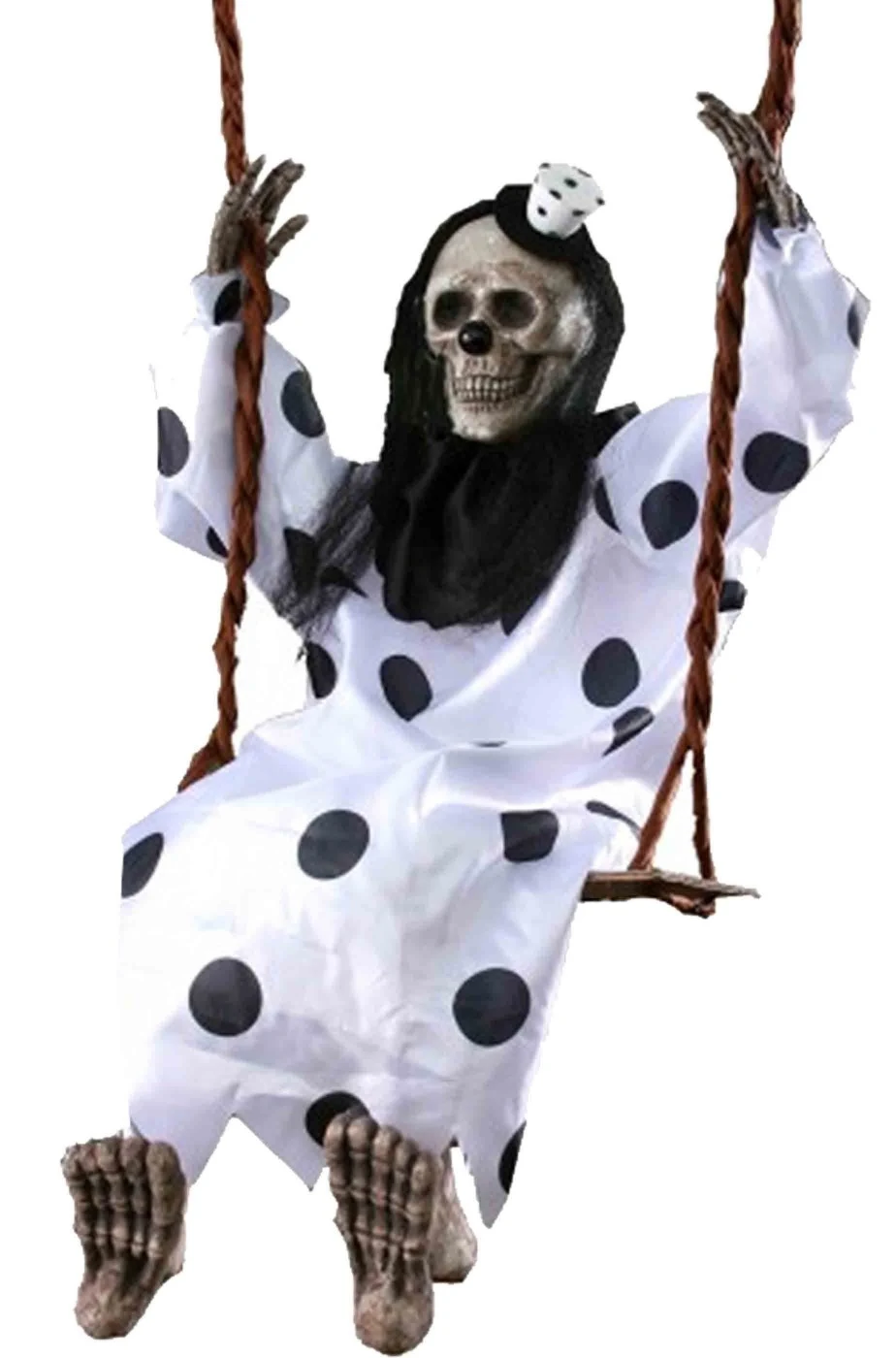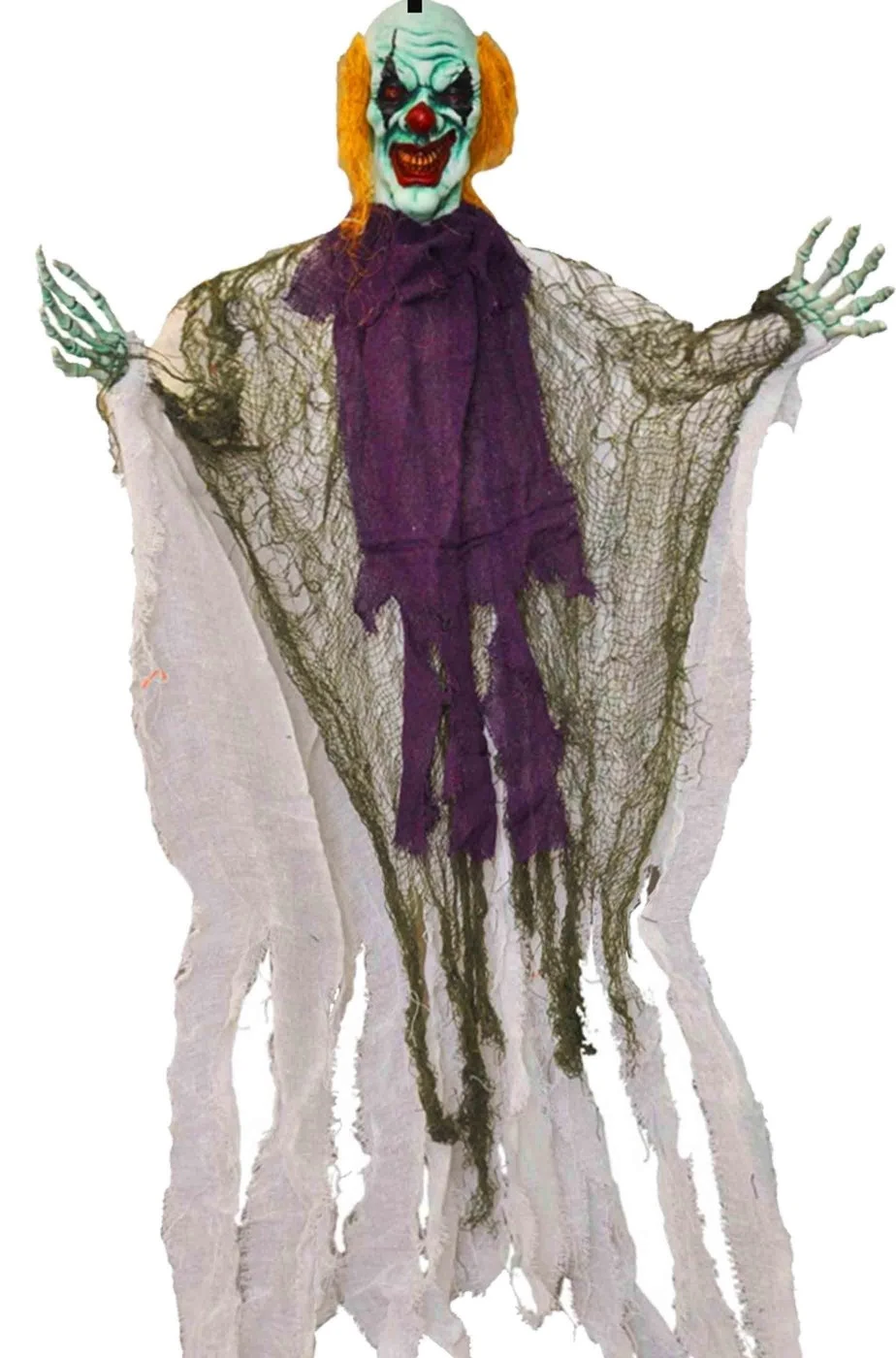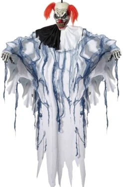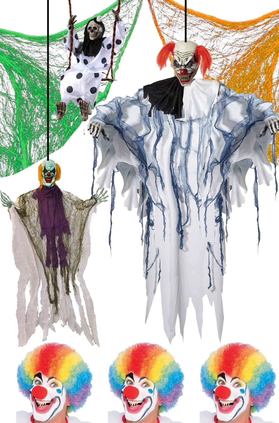 Il pacchetto infatti comprende una grande decorazione Halloween Clown Killer da appendere alto 180cm, un’altra decorazione Halloween da appendere con lo scheletro del Clown trapezista morto alto circa 50cm, un terzo allestimento Halloween Pagliaccio horror da appendere alto 90cm. Inoltre troverai una confezione di ragnatela Halloween verde ed una arancione per realizzare un tendone di ragnatela colorata sopra ai tuoi pagliacci dell’orrore. Infine, nel pacchetto di questo allestimento per Halloween ti offriamo tre parrucche multicolor da clown, due fondotinta bianchi ed uno rosso per realizzare il trucco del tuo personale di sala. Trasformerai senza problemi il tuo locale con una scenografia Halloween cinematografica e riutilizzabile per anni.