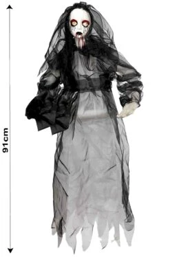 La bambola morta e la sposa cadavere: due personaggi spaventosi dei film dell’orrore che potrai avere come decorazione Halloween da appendere con questa Bambola Fantasma della Sposa Cadavere.