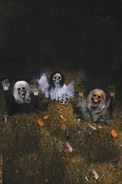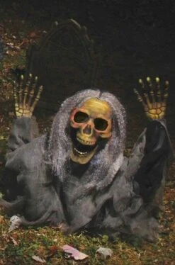 Queste tre Halloween props, come le chiamano in USA, ovvero addobbi scenici per Halloween rappresentano tre scheletri di morto che risorgono dalla tomba. Vengono infatti chiamati usualmente in Inglese grave breakers ovvero rompi tomba. Sono in tre differenti colori: verde marcio per uno zombie davvero spaventevole, morto da molto tempo, grigio scuro con i classici colori della grande mietitrice ed infine bianco, che richiama una donna sepolta nel suo abito nuziale. Sono in polistirene espanso, le varie parti (teschio, corpo e braccia) sono tenute da anima di ferro per poterne sagomare la forma come meglio credi. Braccia unite in preghiera o aperte a sfondare la tomba.