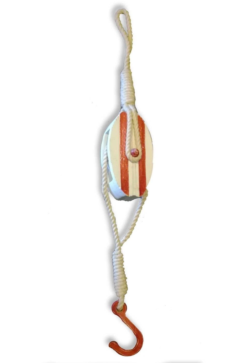 Rendi realistica la tua ambientazione pirati con questo bozzello da allestimento con la carrucola, la corda ed il gancio. Lo puoi usare per realizzare una vetrina, puoi anche usarlo come addobbo per dare realismo ad una zona a tema pirati in un parco di divertimenti a tema. E’ un addobbo quindi, sebbene molto realistico perche’ in legno e corda vera, il bozzello non ruota. Alto circa 50cm