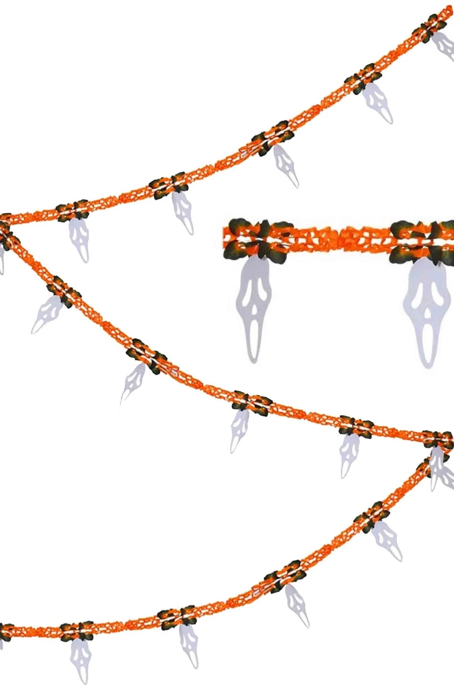 Striscione in carta a soffietto arancione e nero che con mascherine Scream all’infinito. Lungo ben 4 metri. Economico e molto riempitivo.