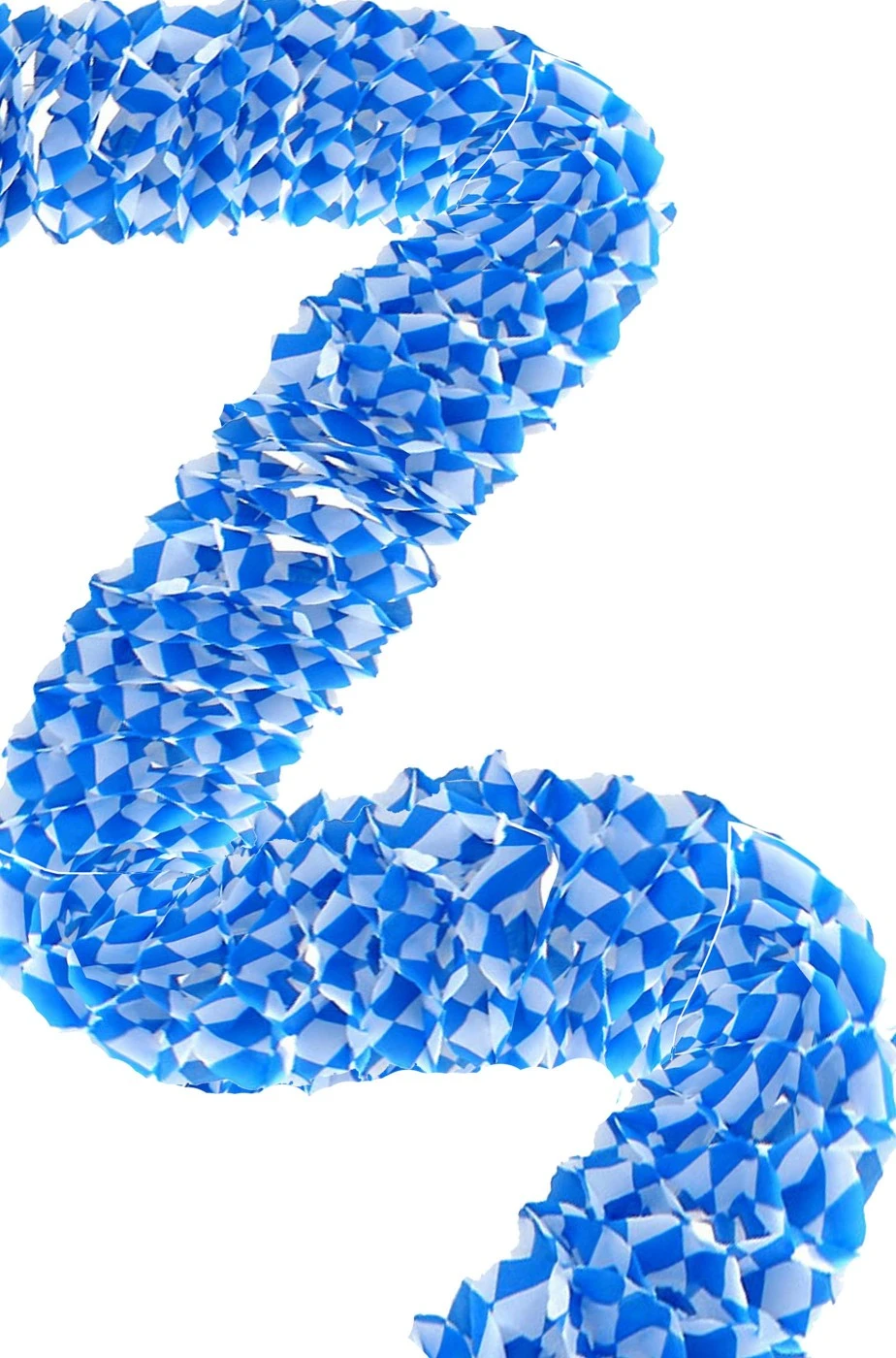 E’ lungo ben 4 metri questo festone decorativo per festa della birra. Uno striscione da allestimento da Oktoberfest con i colori della baviera bianco ed azzurro, ideali per organizzare la tua octoberfest nel tuo locale, nel tuo bar o anche a casa. Leggero, si appende facilmente ovunque, ma molto riempitivo.