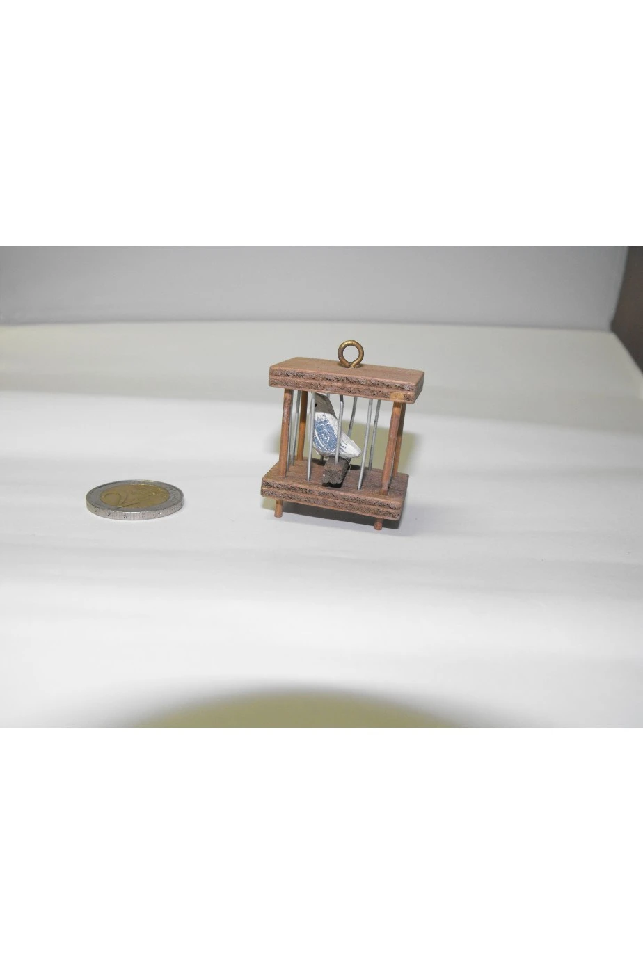 Gabbietta quadrata in legno con uccellino per Presepe anche per diorami paesaggi di modellismo