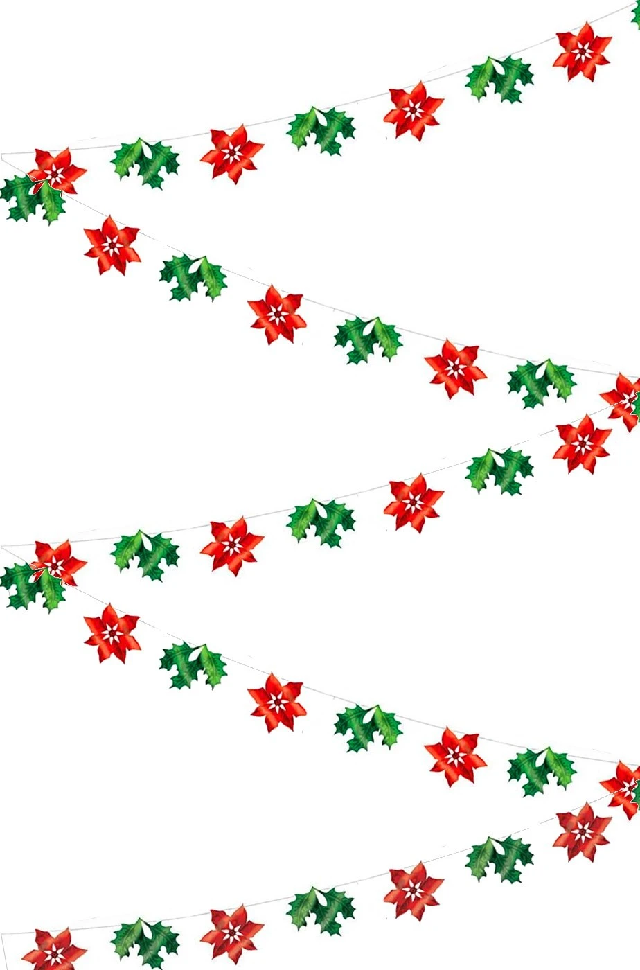Allestimento natalizio molto bello, riempitivo ed economico questo striscione di filo trasparente con le stelle di Natale e le foglie di vischio. Una ghirlanda che creerà un’atmosfera ideale per la tua sala a Natale
