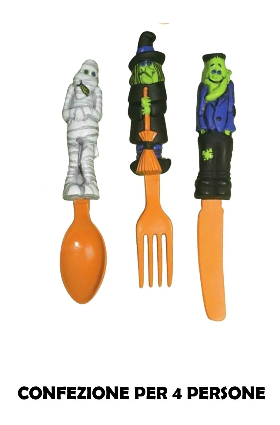 Simpaticissimo set di posate lavabili e riutilizzabili per tutta la famiglia la cena di Halloween ma anche come gioco per i bambini per farli stare bravi a tavola coi personaggi più amati