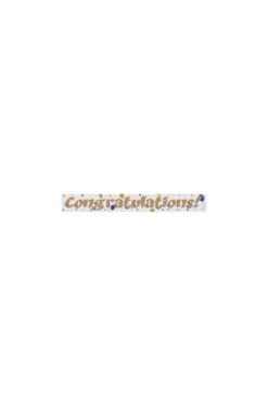 Questo striscione da festa ha la scritta congratulations ripetuta ben 4 volte.