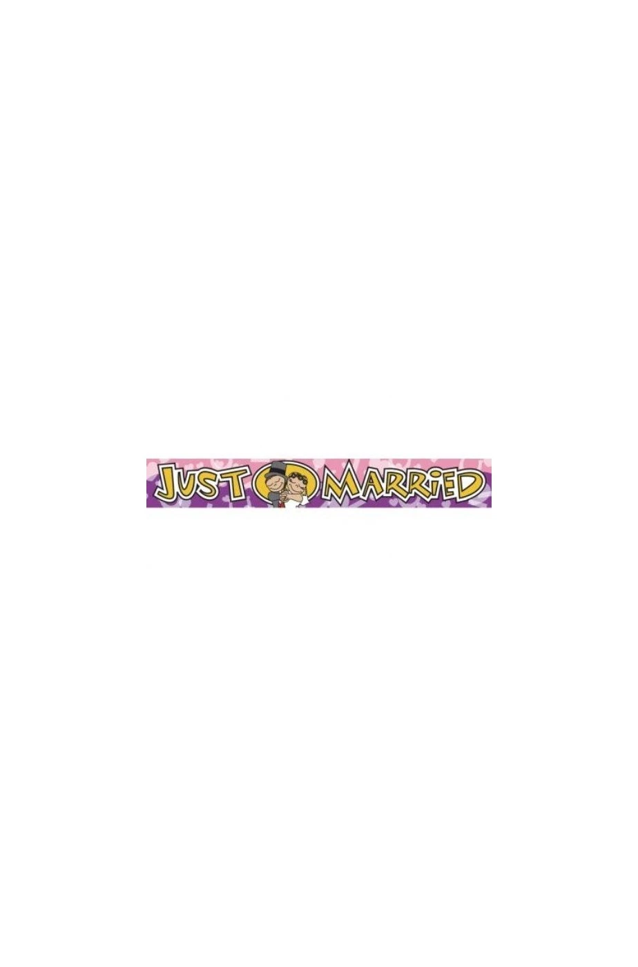Lungo ben 2,70, questo striscione viva gli sposi Just Married è in leggero polietilene trasparente. La scritta Just Married è ripetuta tre volte