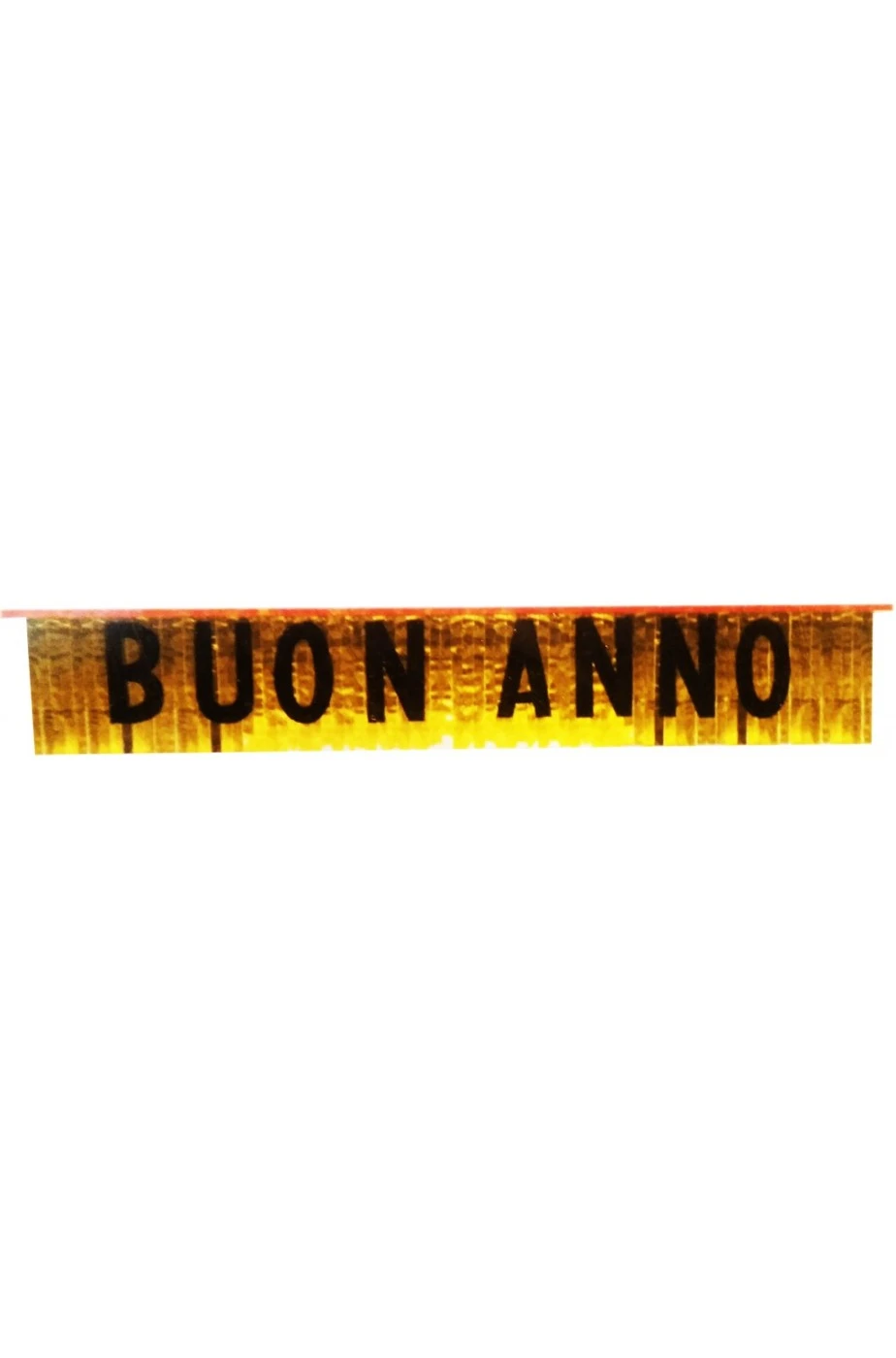 Striscione da appendere lungo 140cm in materiale riflettente oro e nero.