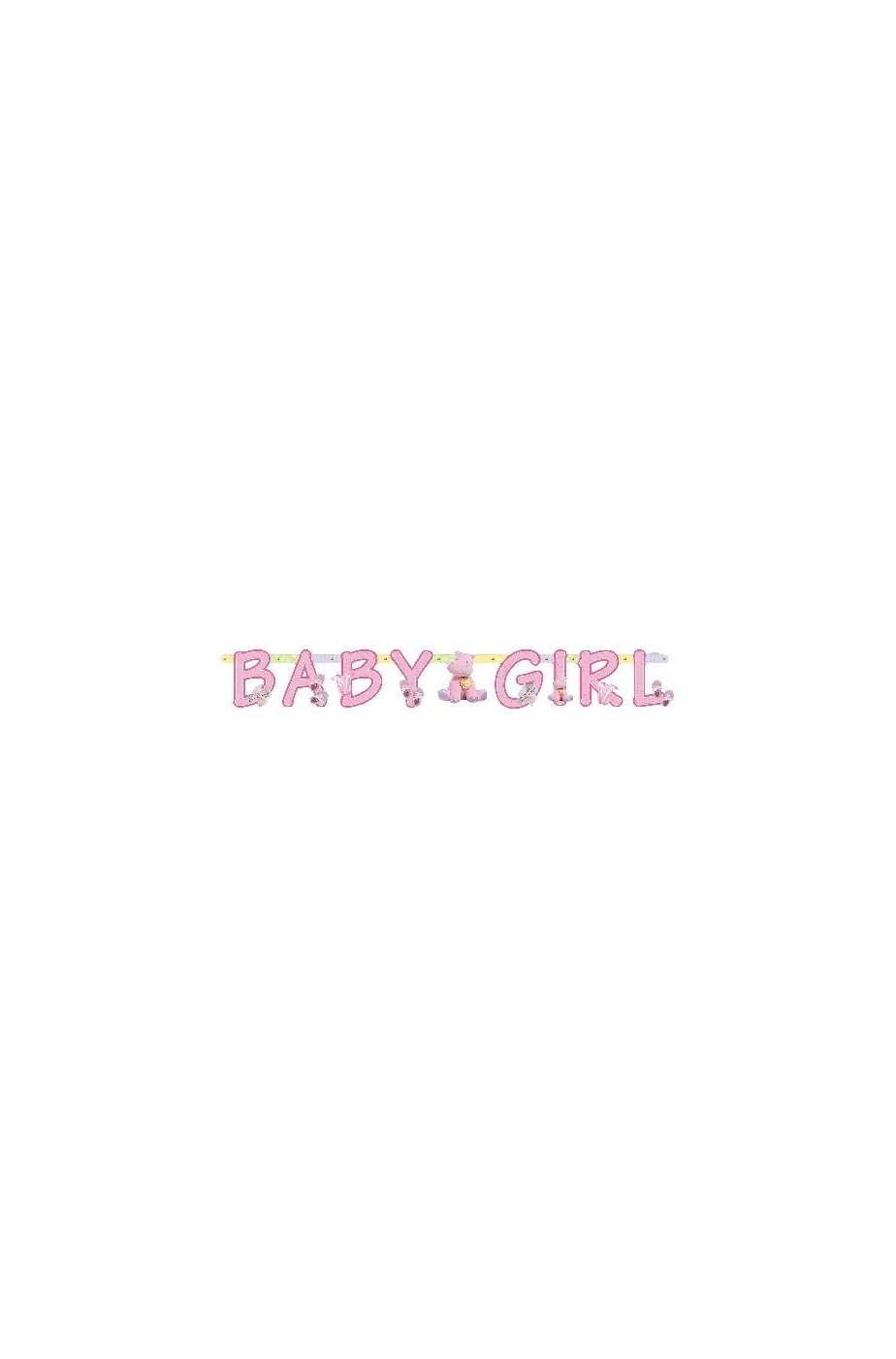 Diamo il benvenuto alla nuova arrivata e festeggiamo la neo mamma Striscione con lettere in cartoncino “Baby Girl” e piccolo ippopotamo rosa. Lunghezza ben 280cm. Per la nascita della tua bambina, da portare in ospedale e sistemare sopra al letto di mamma. Simpaticissimo.