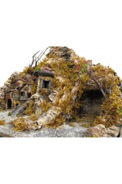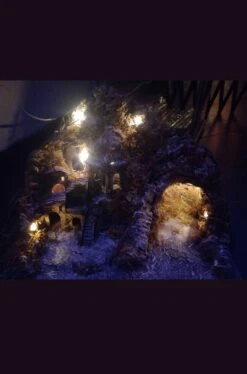 Presepe artigianale con grotta, casette, tutto fatto a mano illuminato fantastico anche per vetrine a Natale