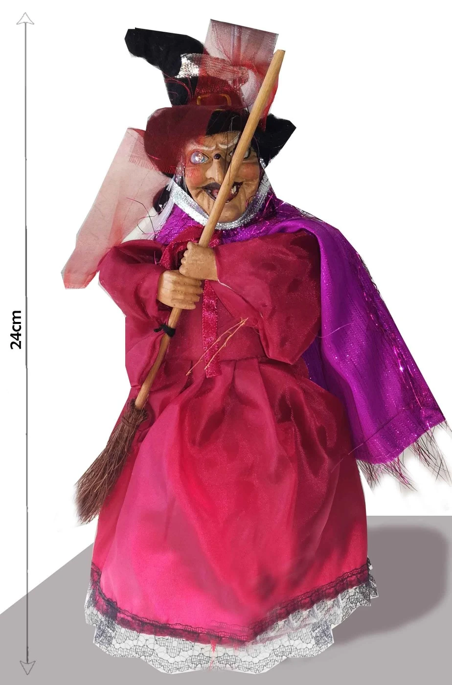 Befana Decorativa Strega Rossa Porpora Con Scopa 23cm Rossa
