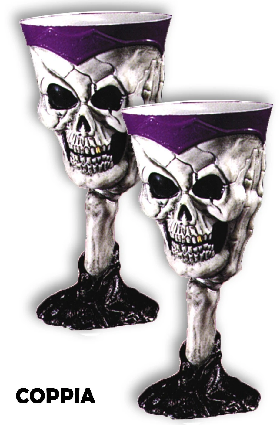 Bicchiere Calice Horror Con Teschio Grigio Coppia
