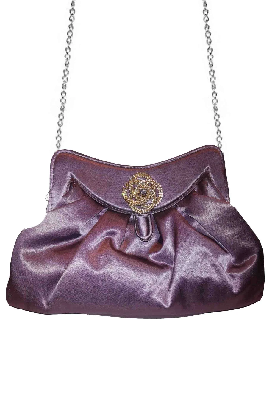 Borsa o borsetta da donna a pochette grigia scura con cameo a fiore con brillantini