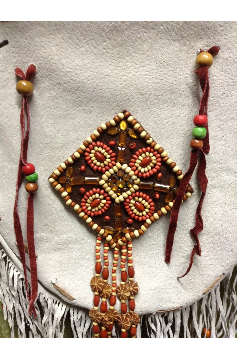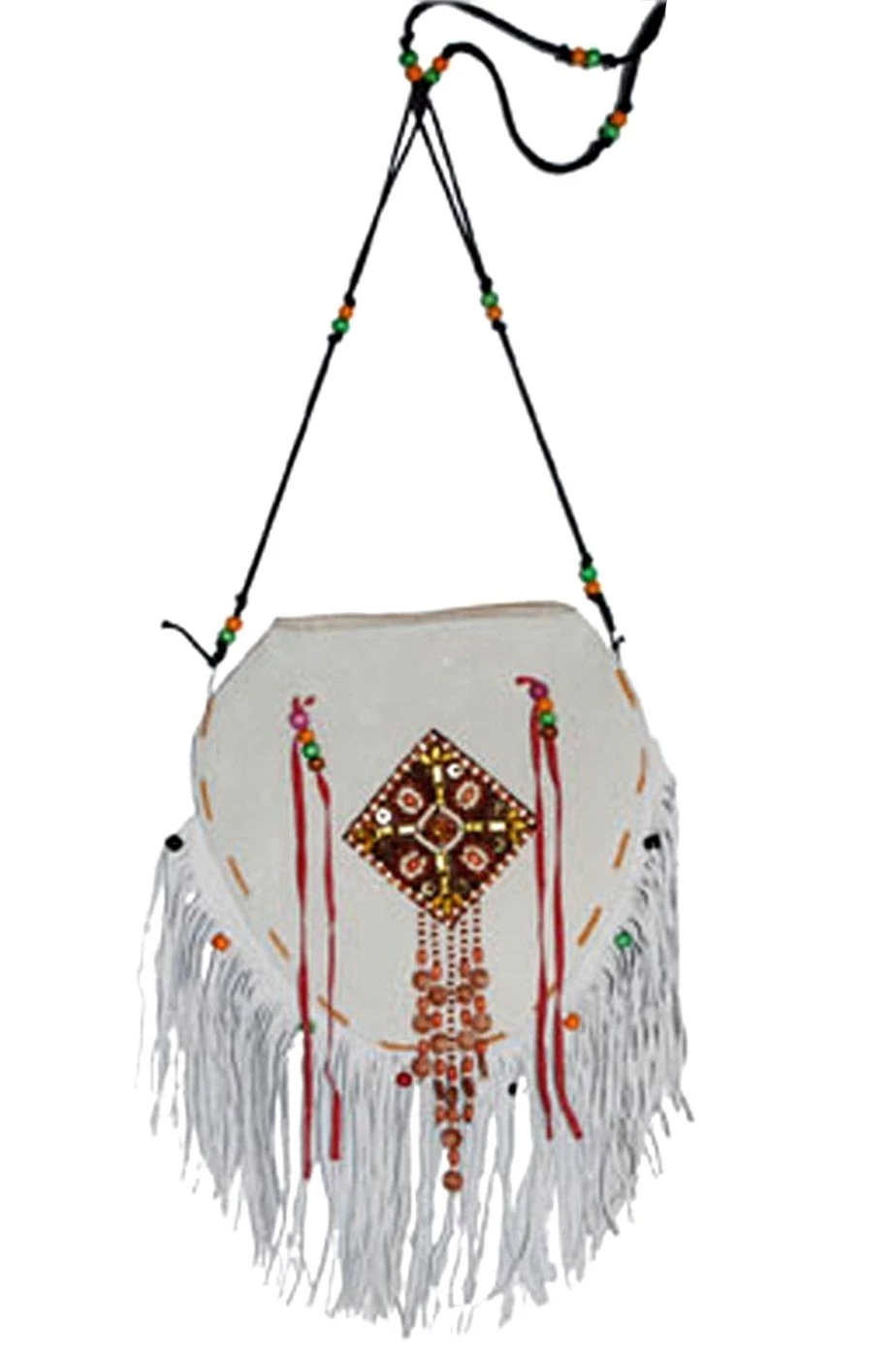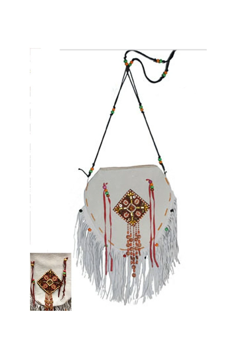 L’accessorio indispensabile per completare il tuo costume di carnevale da indiana o per rifinire un abito da pochaontas questa borsetta indiana in finta pelle scamosciata bianca e’ bellissima perche’ davvero realistica alla vista e al tatto.