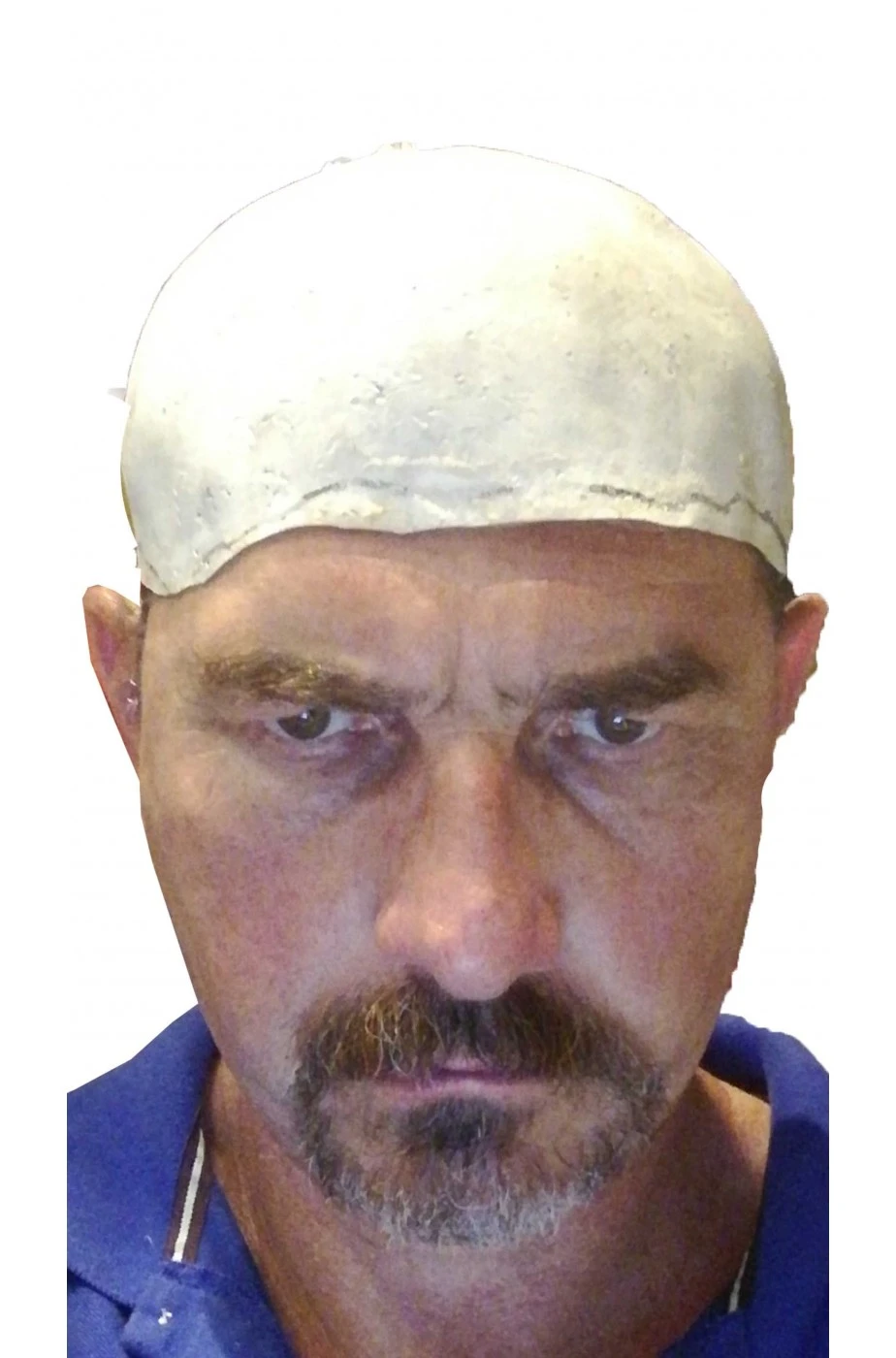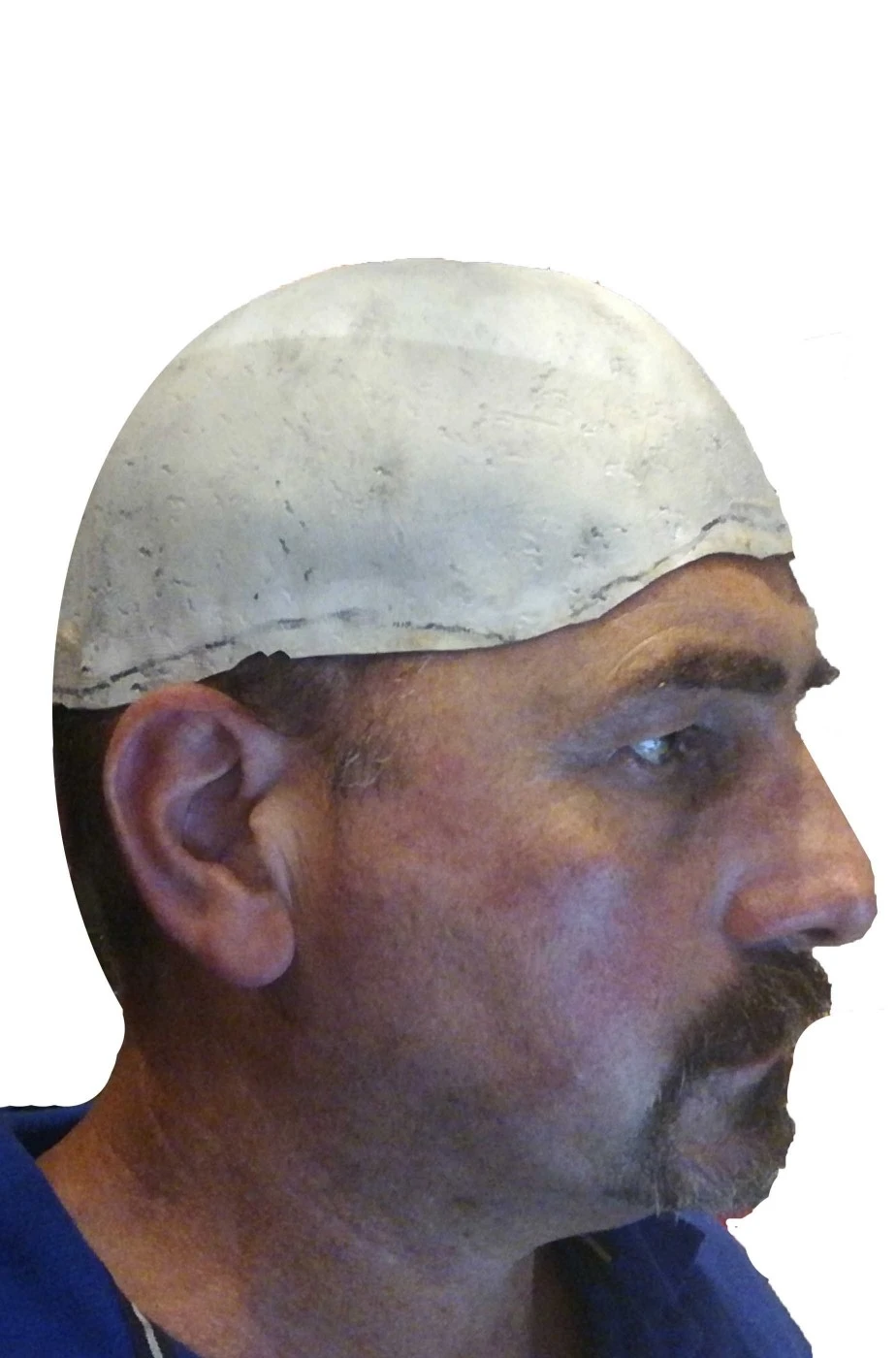 E’ la classica parrucca da calvo ma gia’ di colore bianco per realizzare personaggi di fantascienza o di film più spessa per consentire di attaccare o cucire peli o capelli