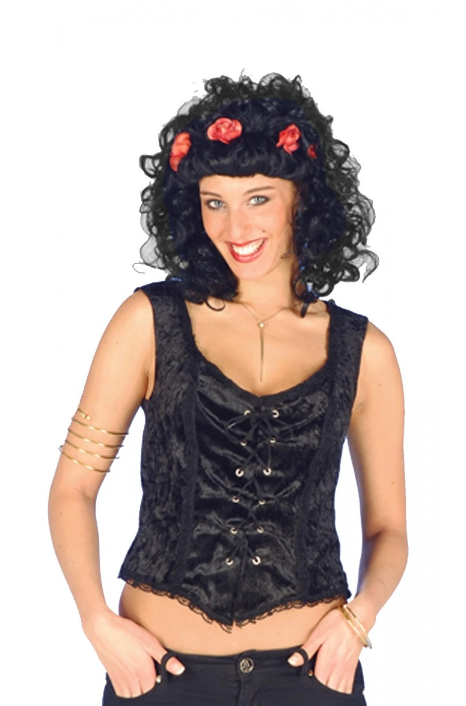 Camicia da donna nera senza maniche a corsetto con allacciatura davanti