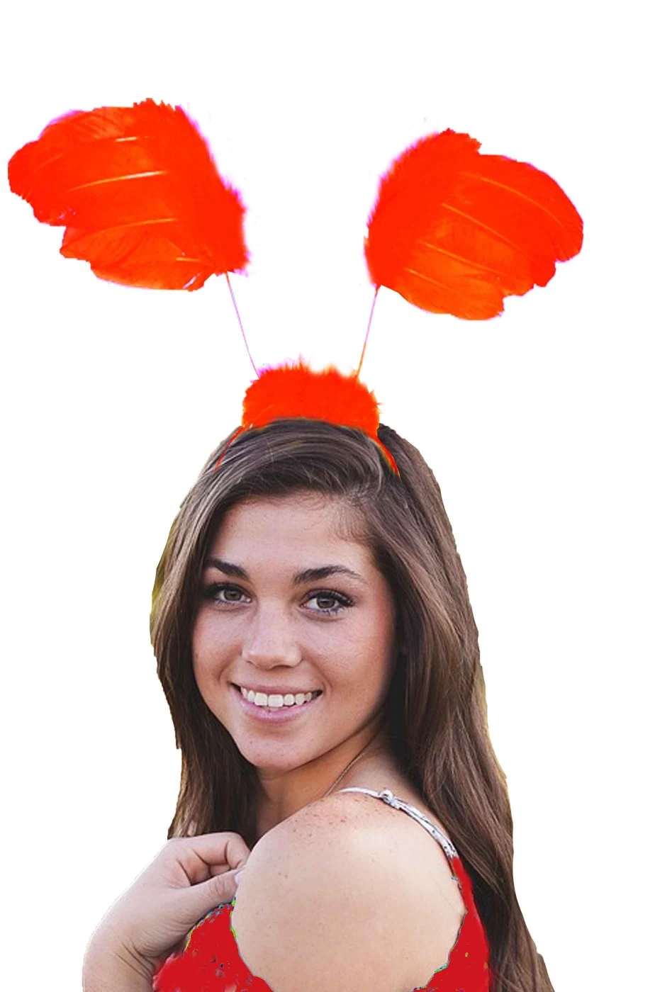 Piccole ali di piume rosse su cerchietto ideali per personale di bar, discoteche, locali