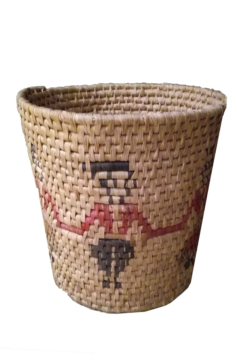 Cesto in paglia portavaso, portariviste con disegni in stile messicano maya ideale per completare allestimenti, scenografie o vetrine a tema etnico.