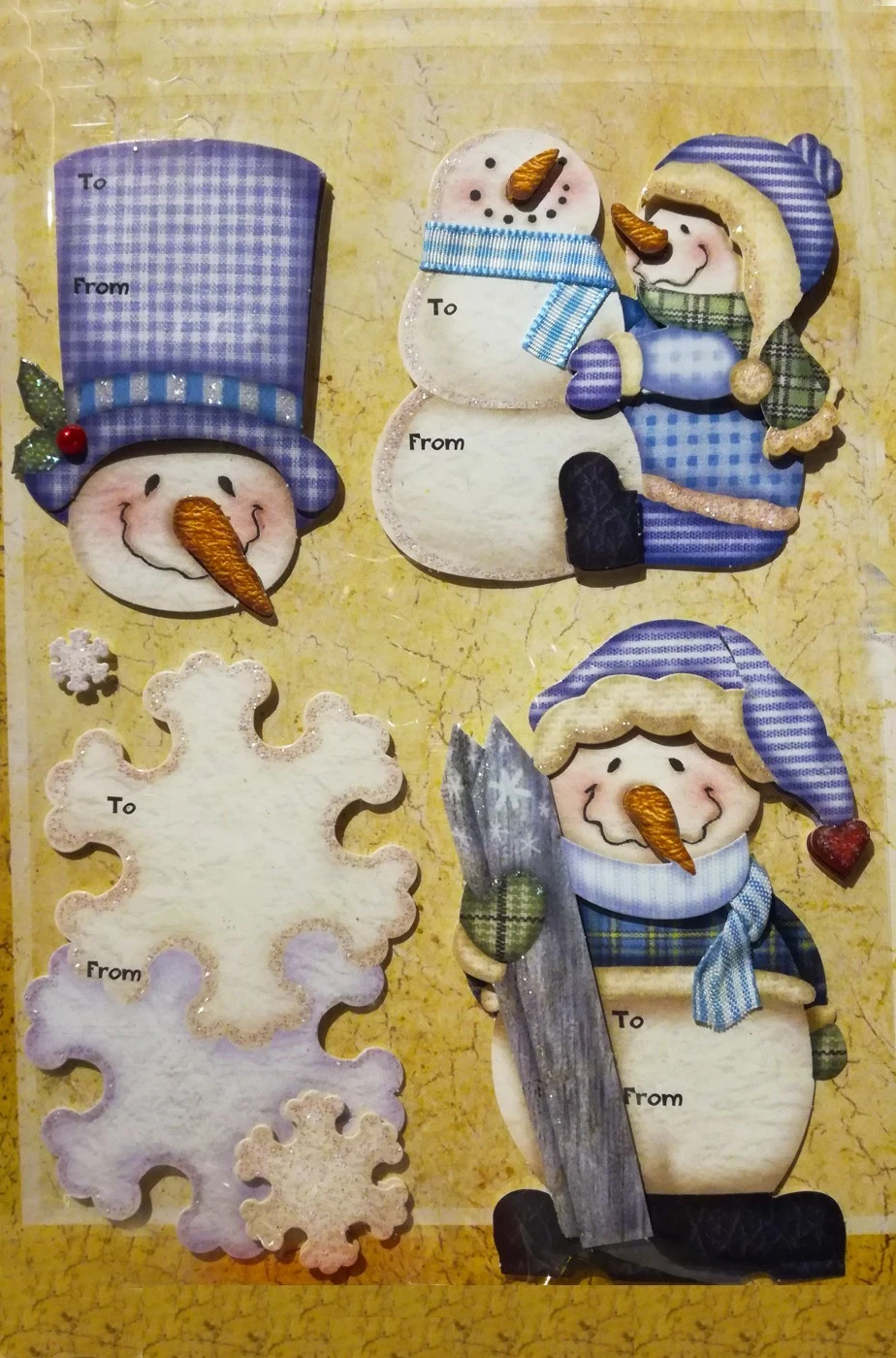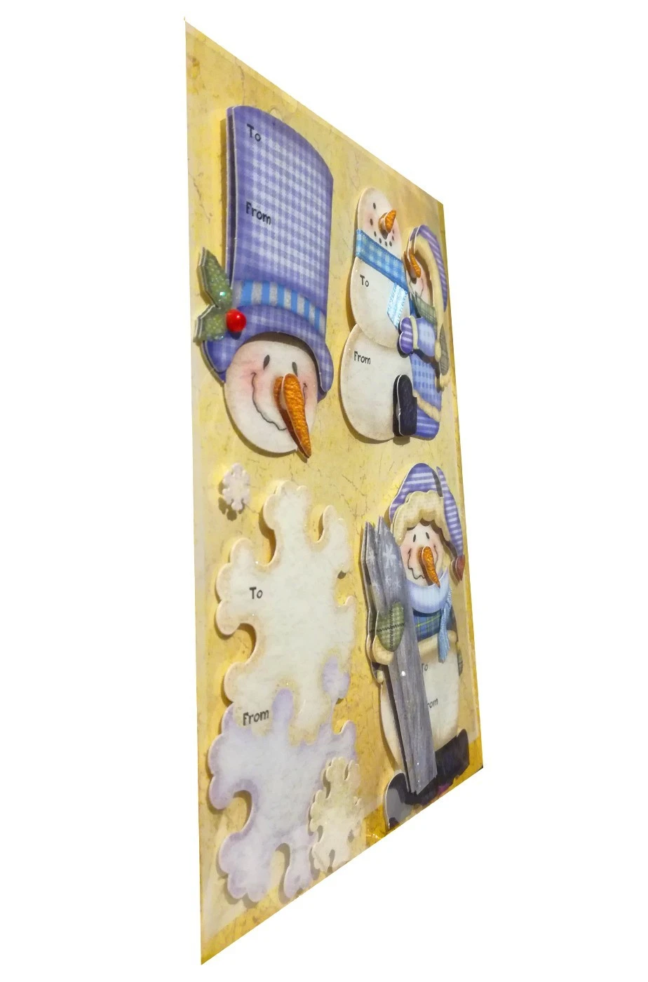 Busta di 4 adesivi chiudipacco per Natale con personaggi pupazzi di neve e fiocchi. Ciascun personaggio è alto circa 8,5cm. Ci puoi scrivere sopra il tuo nome per un pacco regalo natalizio che già porterà la magia del Natale nella casa. I personaggi sono in rilievo. Sono disponibili due tipi di assortimento. Ne verrà inviato uno a caso tra i due secondo disponibilità.