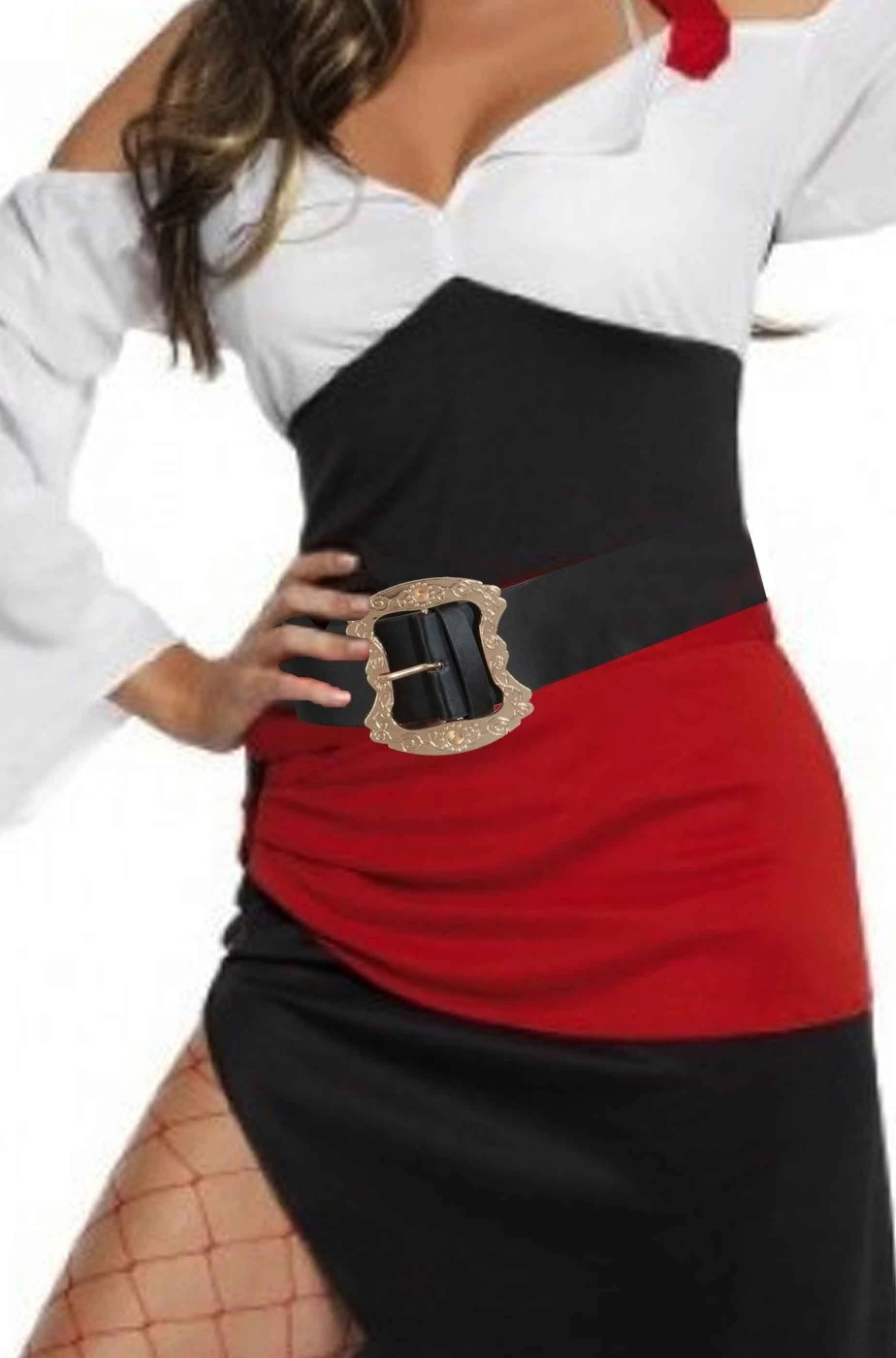 Cinturone nero in similpelle con fibbia lavorata. Questa cintura nera con fibbia in metallo e’ ottima per un costume da pirata, per completare un Babbo Natale, per un guerriero o un cavaliere medievale o un soldato. Altezza cm, 5