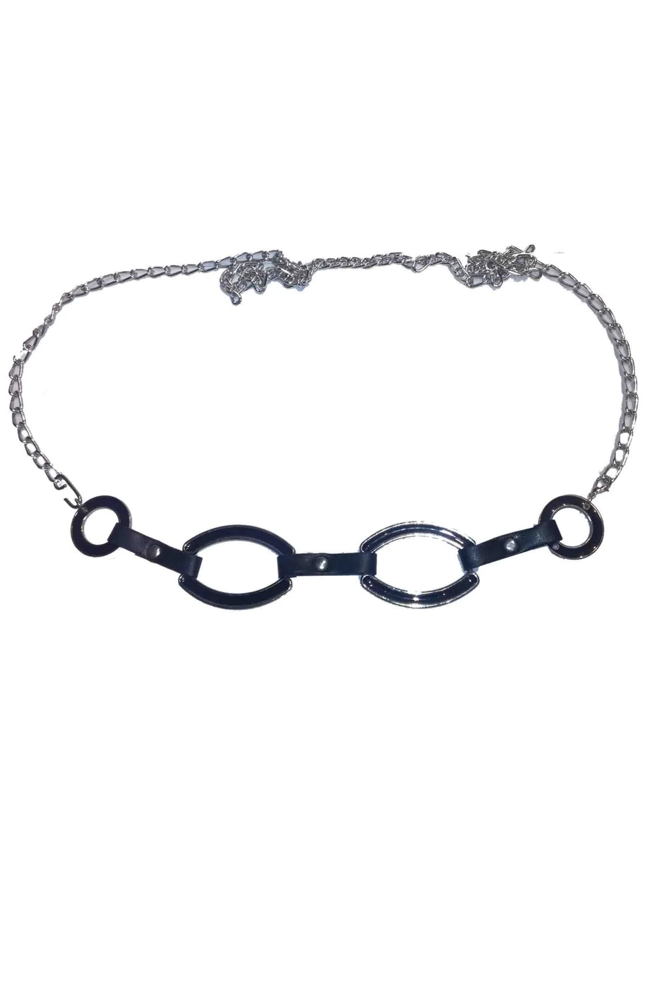 Davvero vintage questa cintura da donna con i grandi anelli ad ellisse fatta di pelle e metallo per un look anni 60.