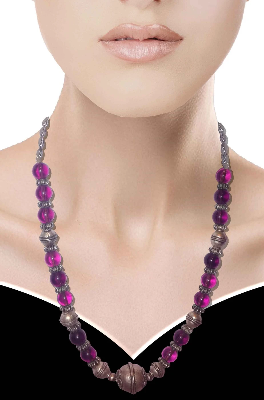 Collana di bigiotteria di catenina metallica con sfere e pietre viola trasparenti che ricorda i gioielli indossati dalle dame storiche per cui la consigliamo come complemento ad un costume in stile medievale. Ad esempio potresti utilizzarla su un vestito da Lady Marian o Marion di Robin Hood o su un abito rinascimentale. Puoi completare anche un vestito da per una principessa o una regina d’epoca perche’ questa collana .