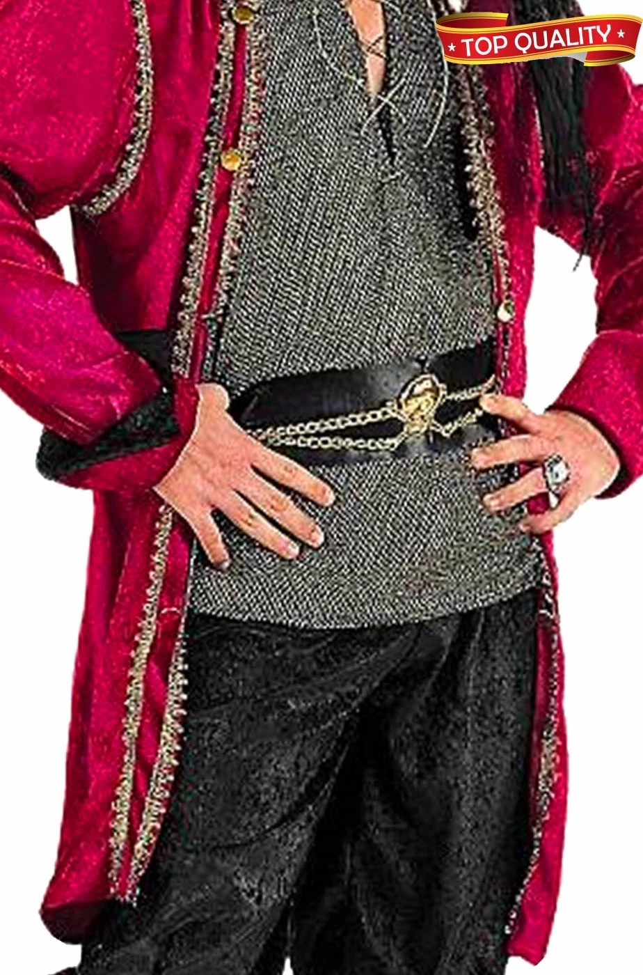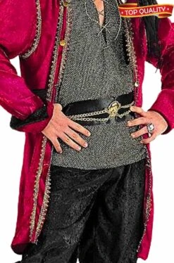Per accogliere gli ospiti ad un evento a tema, per un museo, per una agenzia di eventi o semplicemente per i protagonisti della festa pirati questa coppia di costumi da pirata e piratessa di alta qualita’, due veri pirati dei Caraibi che non temono nessuno. Prodotti con tessuti di qualita’ scenografica, questi costumi da pirati adulti sono molto ben rifiniti e veramente eleganti oltre che molto belli e luminosi. La parte rossa e’ in lucida e luminosa ciniglia rossa cangiante, le parti in rete sono di trama sottile molto bella e di grande presenza scenica. Due vestiti da pirati davvero di classe. Una coppia unica riutilizzabile anche per Carnevale o per Halloween modificando il trucco in versione horror.