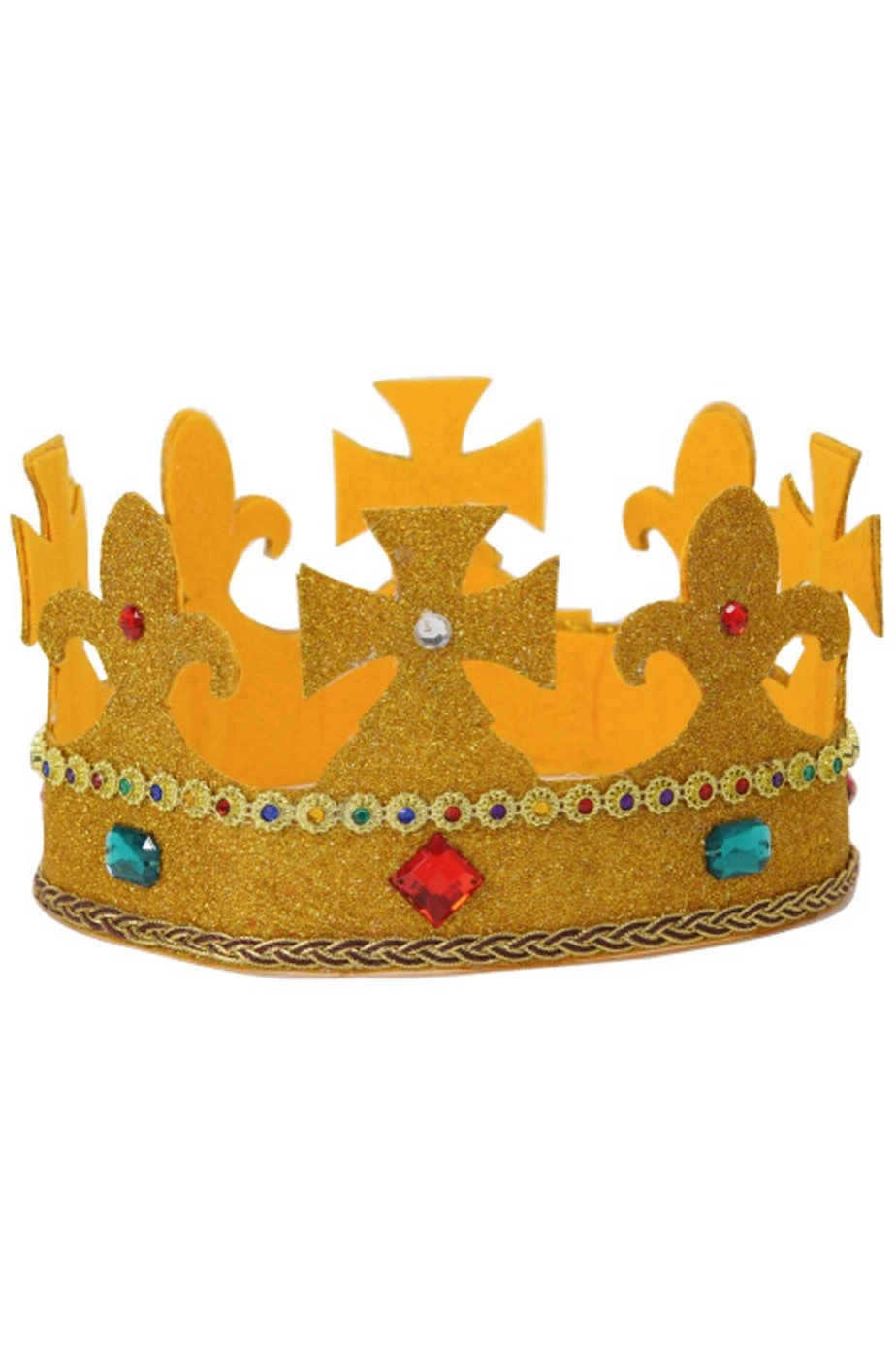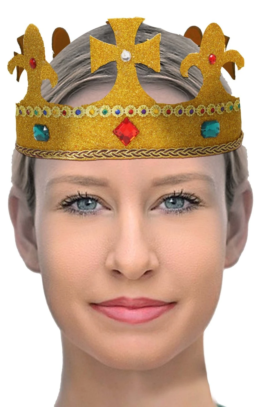 Completare un vestito di carnevale da Re o da Regina non e’ mai stato così semplice con questa bellissima corona finta da re medievale carolingio o merovingio con croci e fiori di giglio. Rellizzata in stoffa per un maggior comfort pur con un bell’effetto scenico consentira’ di completare costumi da re regine principi e principesse da Re Artu’ alla Regina Elisabetta