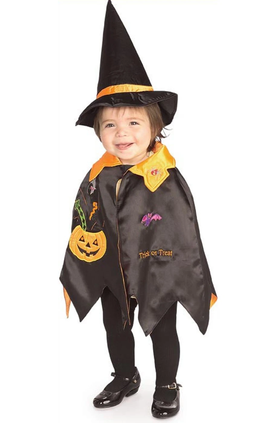 Abito di halloween da streghetta che Include la mantellina nera stampata ed il copricapo da strega. E la tua bimba si divertira’ un mondo ad Halloween!