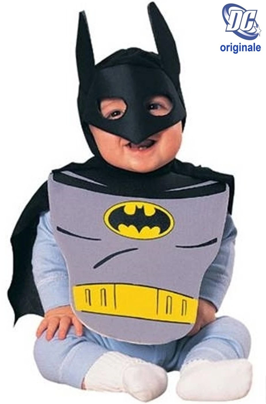 Per il tuo bambino, il suo primo costume da Batman con questo set che include la pettorina a bavaglio ed il mantello con cappuccio a maschera.