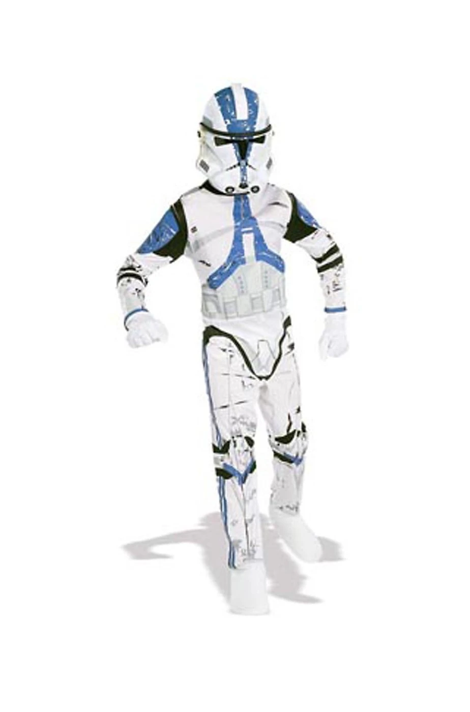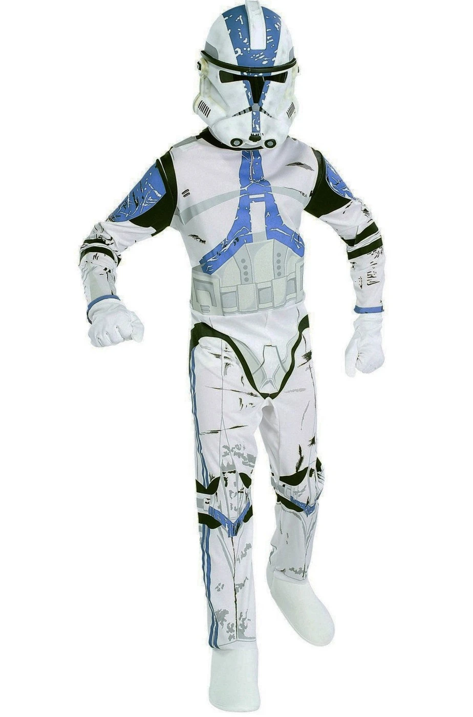 Le guardie della Repubblica Galattica, i Cloni appunto perche’ cloni di del materiale genetico del cacciatore di taglie Jango Fett, sono denominati Clone Troopers e con questo vestito di carnevale da bambino di Star Warso il tuo bimbo potra’ diventare uno di loro, un vero clone trooper indomito per la guerra contro la confederazione di sistemi indipendenti.