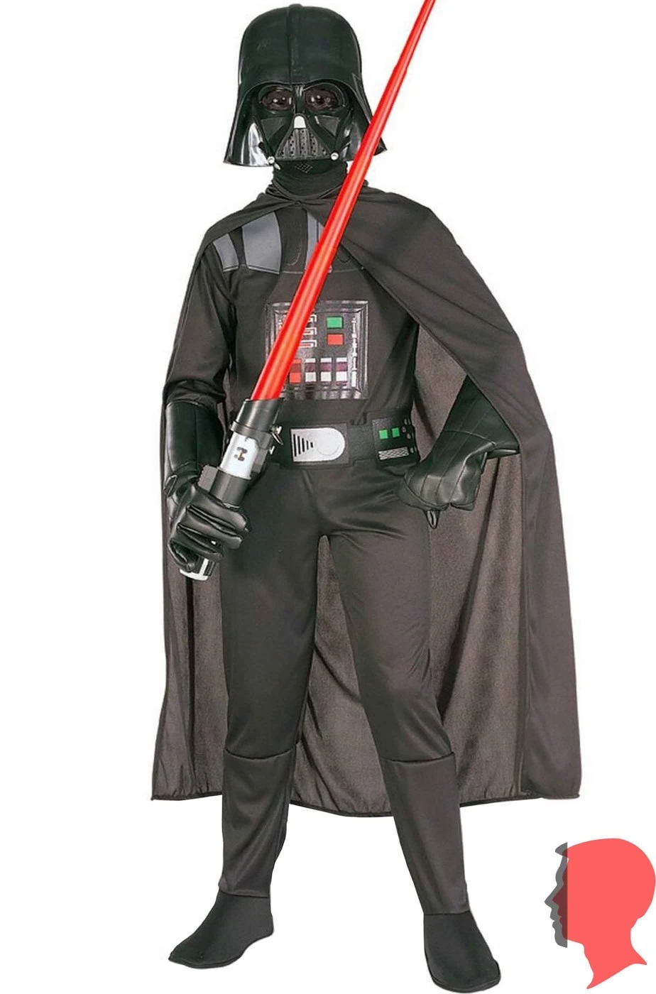 Per il vero fan di Star Wars e del Lato Oscuro della Forza questo vestito di Carnevale da bambino di Darth Vader originale Star Wars Lucas Films Disney. Include la maschera frontale (non il casco integrale), il mantello, il vestito con la stampa del computer di sopravvivenza, la cintura in stoffa stampata.