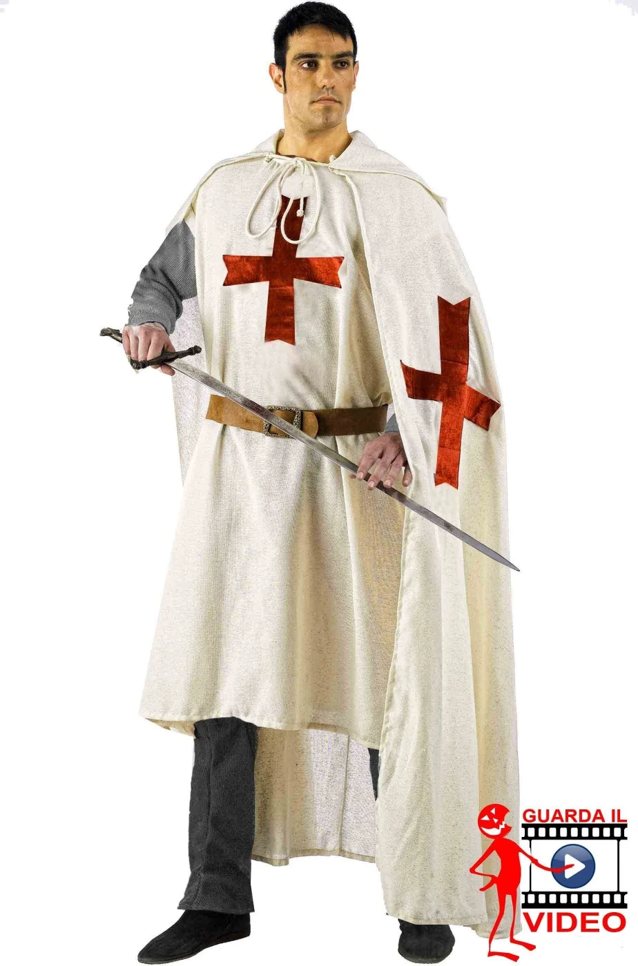 Vestito di scena anche per carnevale da cavaliere crociato medievale con croci templari.