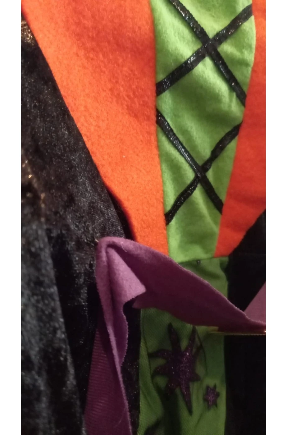 Vestito di carnevale da fatina con le stelline o da elfa dei boschi verde nero e arancio, uno degli ultimi costumi non prodotti in Cina. E si vede! Questo costume da elfa per la tua bimba e’ infatti realizzato in soffice panno di qualita’ cioe’ di poliestere spesso ad effetto felpato. Morbido e piacevole al tatto e da indossare. Molto ben rifinito. Bellissimo. abito di carnevale realizzato in Spagna ancora con quella cura artigianale che usava prima dell’arrivo della Cina. Include solo il vestito (coroncina, bacchetta e calze non incluse). Un capo bellissimo come regalo per la tua bambina a carnevale per renderla bellissima