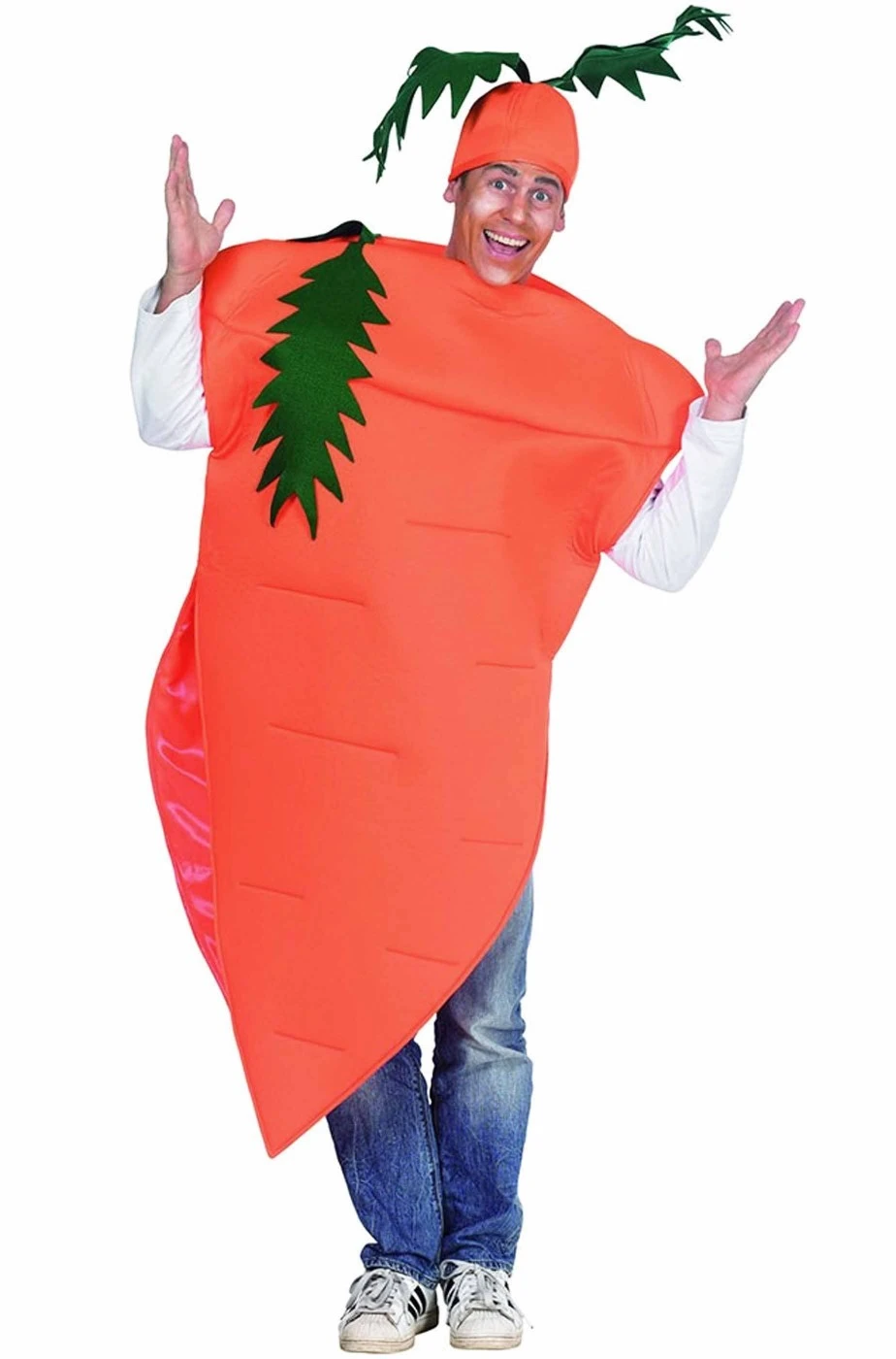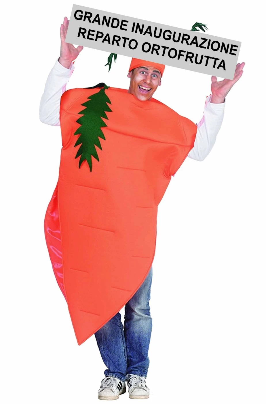 Oppure questo abito da carota può essere un grande personaggio per la festa di carnevale piu’ pazza. Il prodotto include la tunica a carota arancione foderata ed il copricapo con i cespi verdi. Il costume e’ in monotaglia adulto che veste tranqillamente una taglia M, una taglia L e perfino una taglia XL.