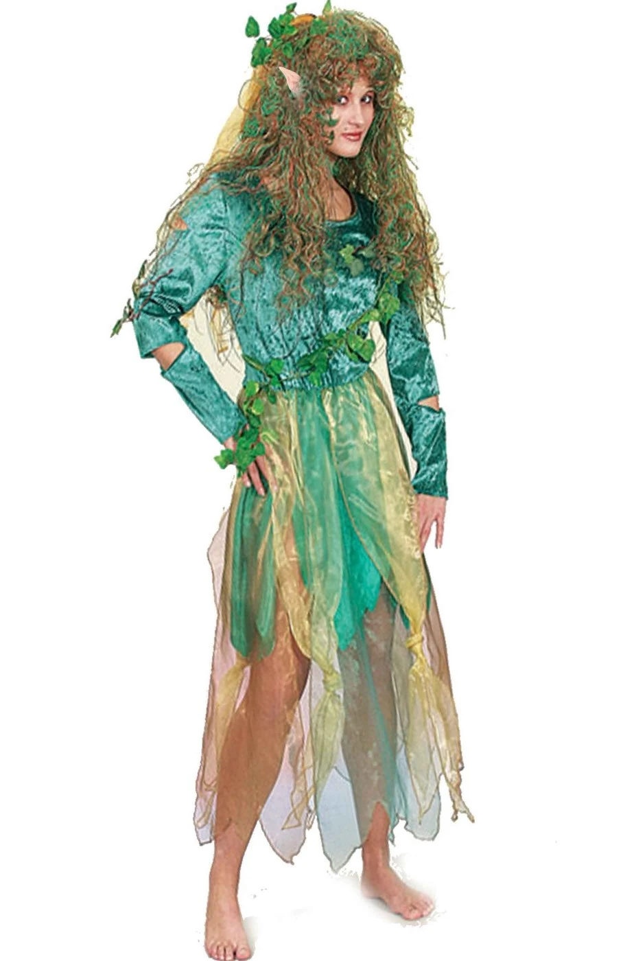 Se vuoi essere una vera elfa della foresta o una fata dei boschi, questo è il costume di carnevale che fa per te. E’ un abito di carnevale completo con la gonna a millefrange semitrasparente. Un abito perfetto per qualsiasi travestimento fantasy. Il tessuto della parte superiore è di ciniglia.
