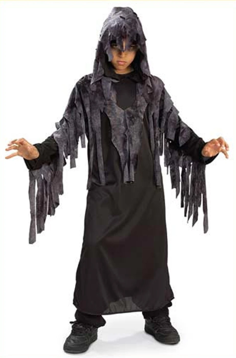 Questo vestito di halloween include tunica drappeggiata con cappuccio.