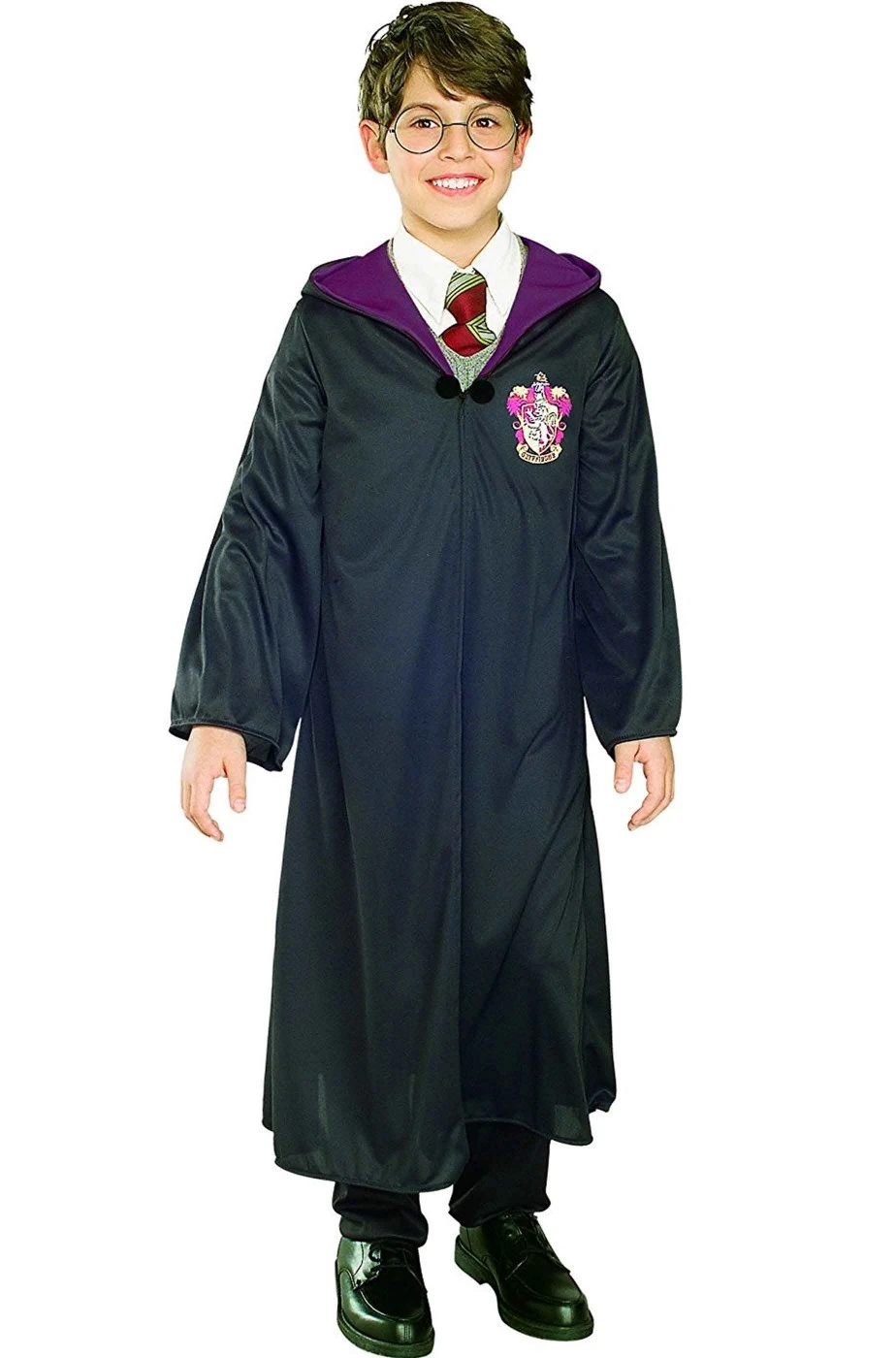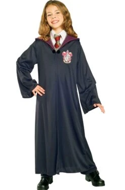 Questa e’ la versione piu’ economica del costume di Harry Potter ed e’ realizzata in poliestere lucido con l’ampio cappuccio ed il marchio Grifondoro in inglese Gryffindor stampato sul petto.