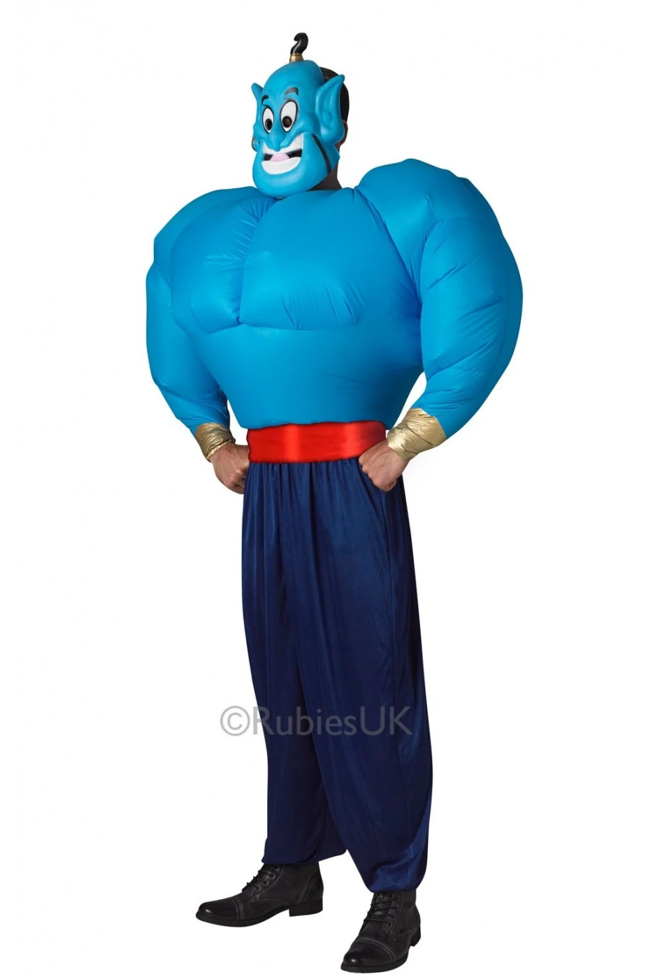 Bellissimo costume con torace gonfiabile (con ventolina inclusa che lo tiene gonfio), maschera, pantaloni stile arabo e cintura.