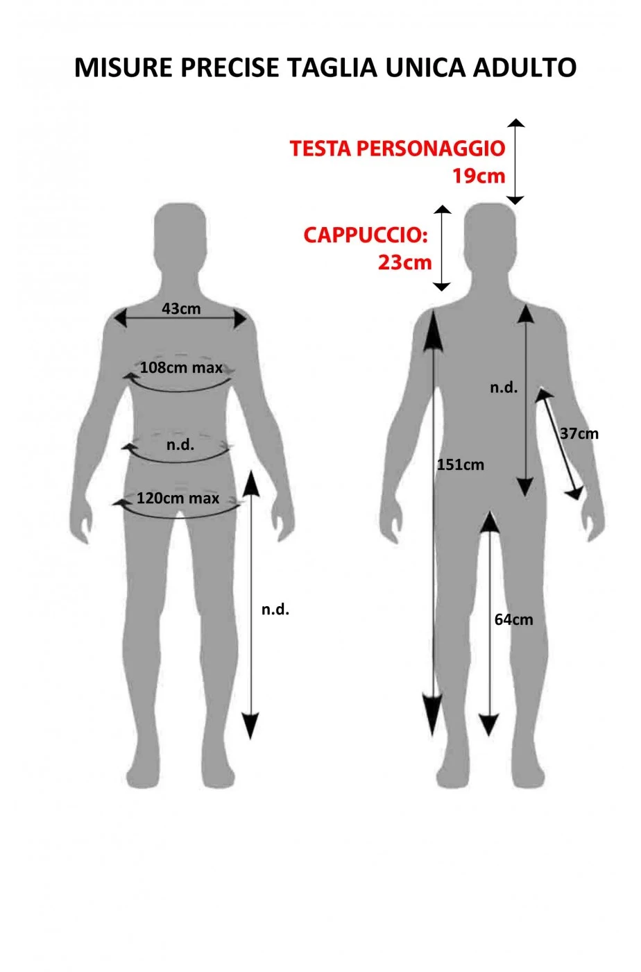 Il costume e’ disponibile in un’unica taglia che veste circa una M adulto