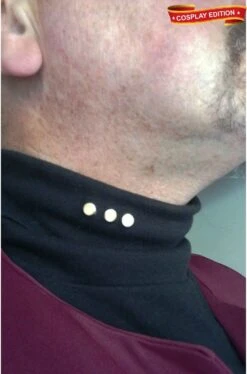 Stupenda versione cosplay dell’uniforme da capitano dell flotta stellare Starfleet di Star Trek versione capitano di Classe Inrepid composta da maglia a collo alto dolcevita nera con grado di capitano a tre spille di metallo dorate, giacca bicolore con scollo a V con spalle color borgogna, spilla in plastica con il logo di Starfleet (non trasmittente senza luci ne’ suoni) nella versione Star Trek Voyager, pistola Phaser in plastica finta versione Star Trek The Next Generation, TOS, Voyager, Deep Space Nine.