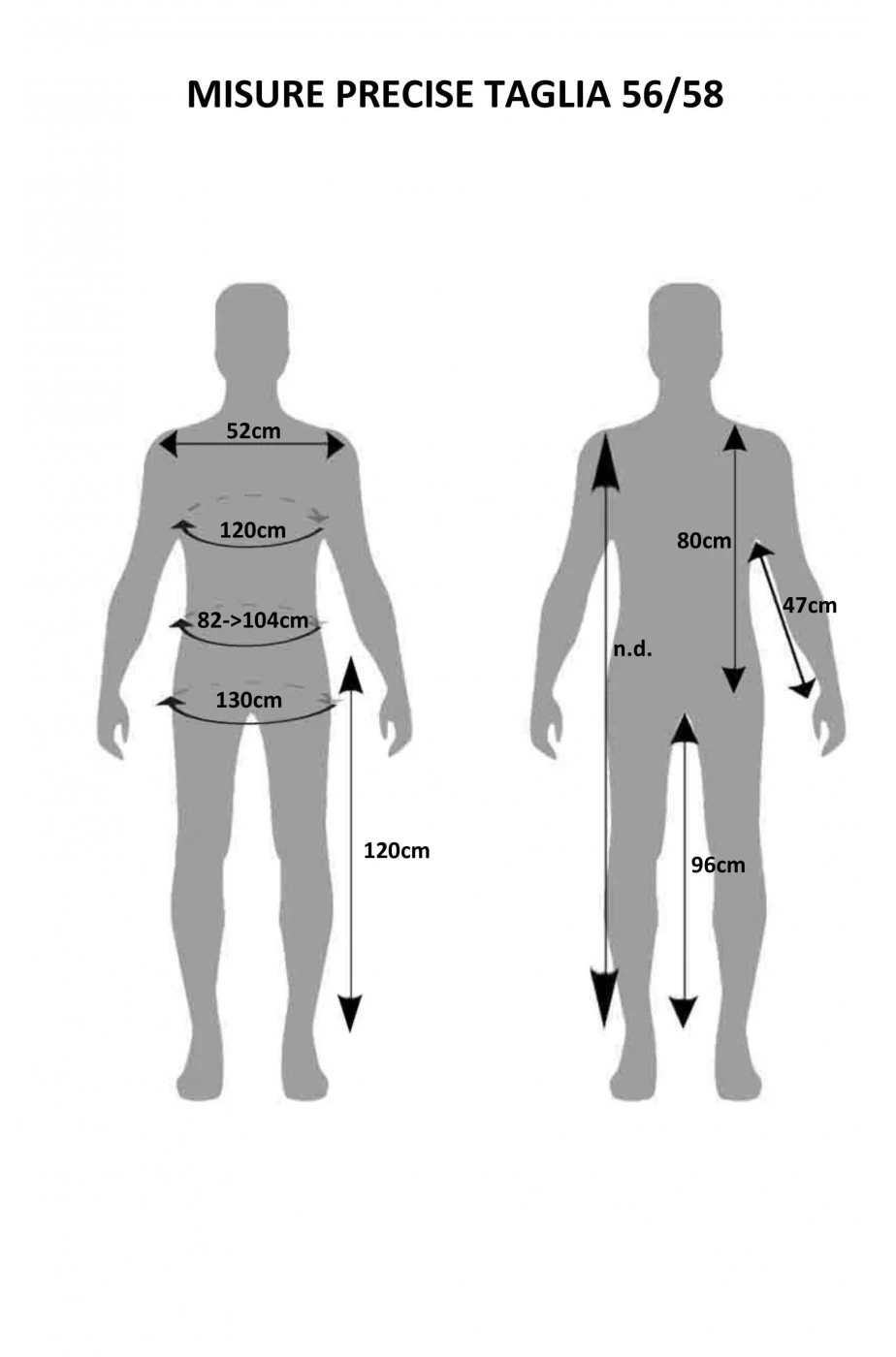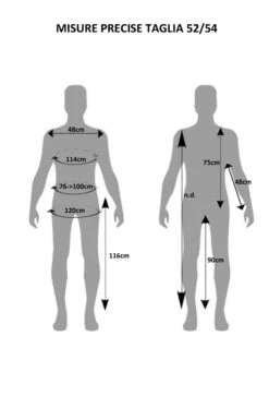 In tessuto sintetico ma spesso e resistente, alla vista da’ una bella impressione di realismo. Da una certa distanza sembra un abito vero e non un costume anche perche’ i bottoni sono veri, cuciti e con l’asola e non, come capita spesso nei costumi di carnevale, finti, senza asola chiusi col velcro o, addirittura, nei vestiti piu’ economici, solo stampati.