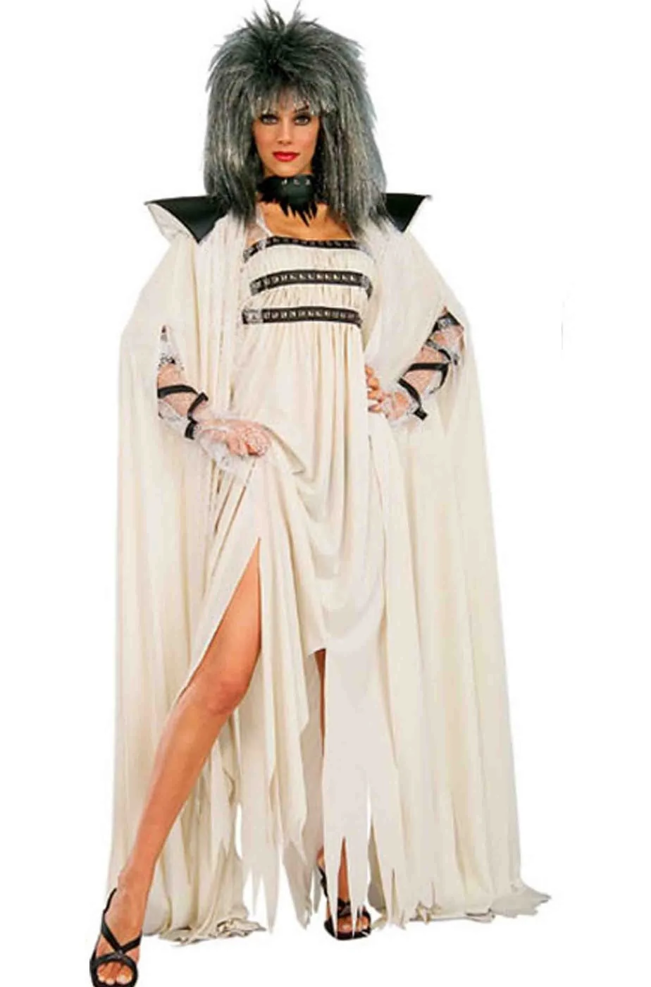 Importante vestito di Halloween da dama vampira bianca per la protagonista della serata. Con questo costume di Halloween potrai interpretare una vampira ma non solo: anche una sacerdotessa o una esorcista. Puoi aggiungere i denti, il sangue, la parrucca o una croce. Scegli tu: Il vestito è liscio senza elastici veste molto bene anche le taglie più confortevoli.