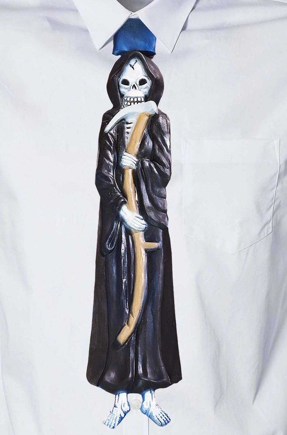 Cravatta Finta Con Elastico In Lattice Halloween.Nera Con Morte