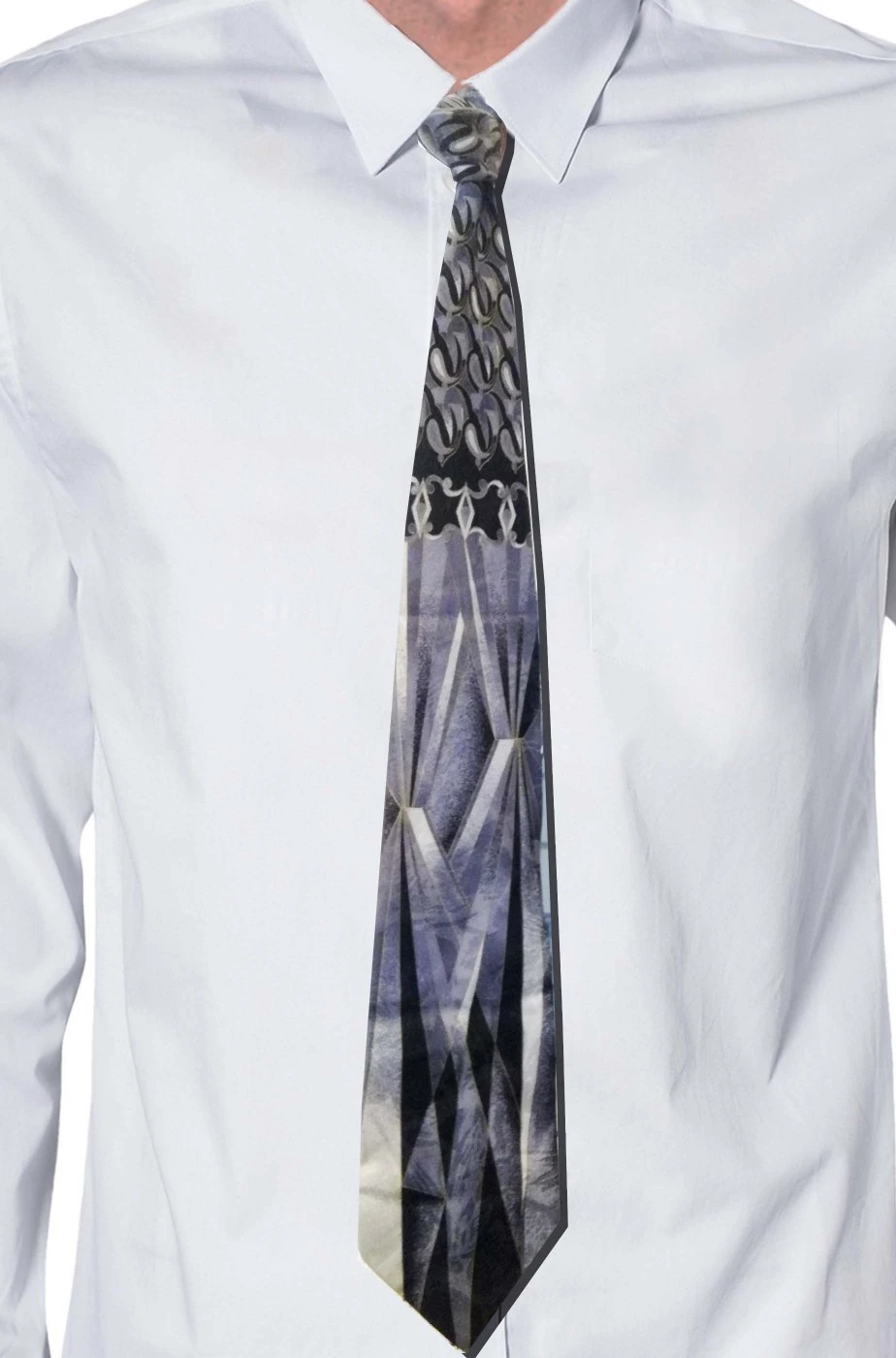 Un disegno futurista che suggerisce questa cravatta grigia a losanghe come regalo ideale per l’amico che apprezza l’arte futuristica. Grazie alla stampa a losanghe verticali, alle tonalita’ di grigio e nero, al disegno futuristico, questa cravatta grigia e’ un elegante complemento che stacca su un abito elegante.