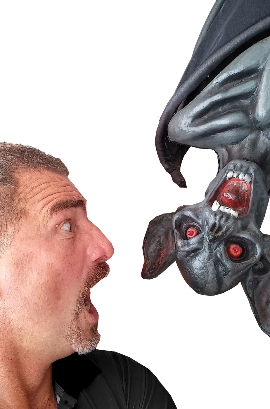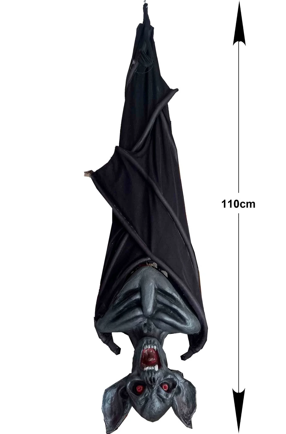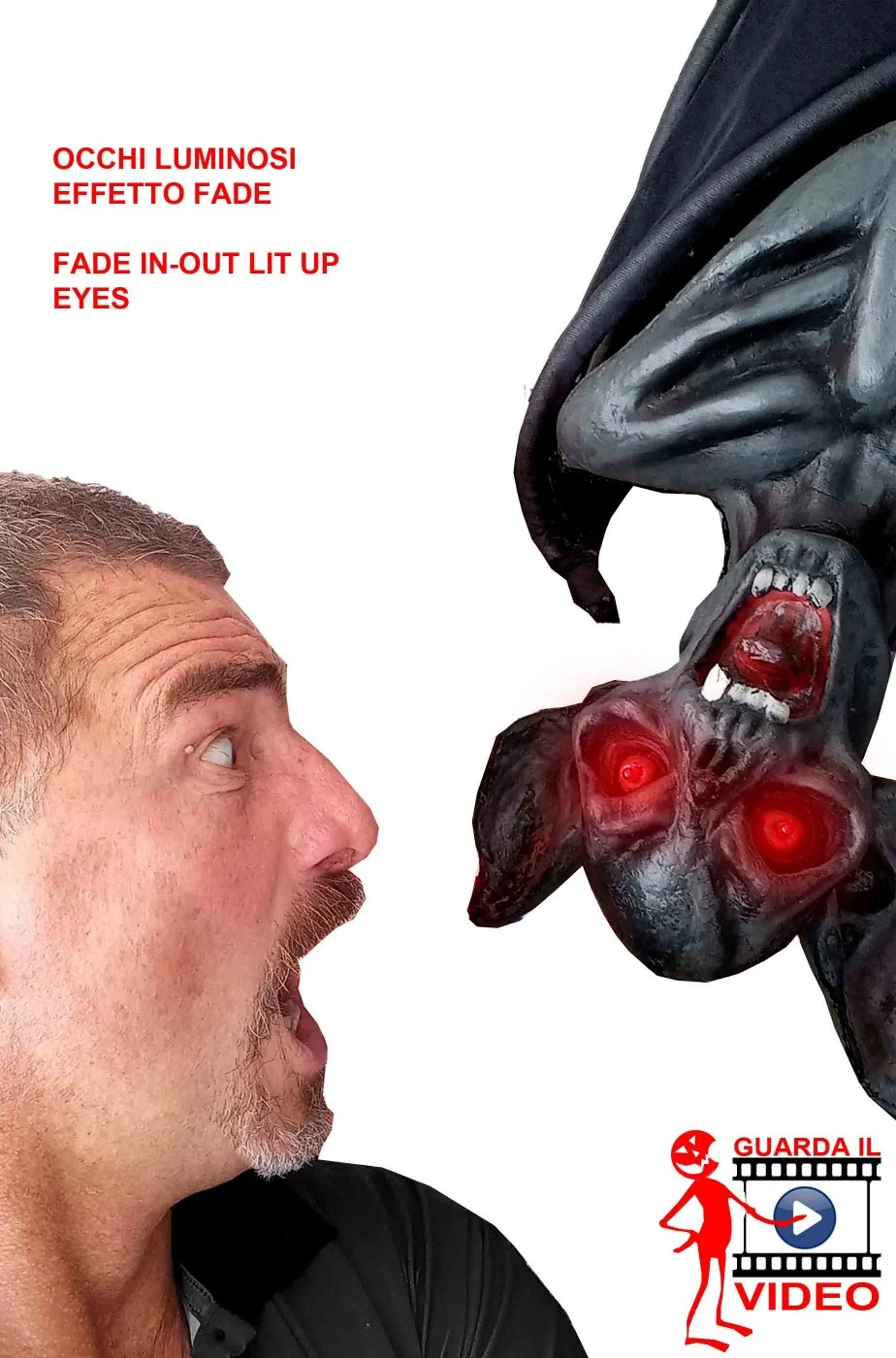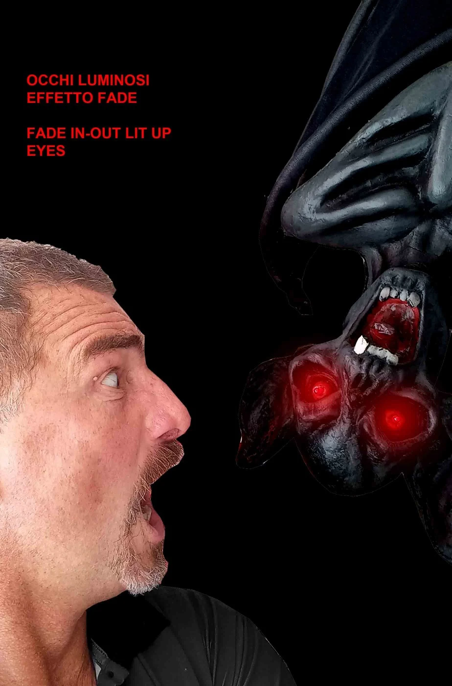 Lunga ben 110cm questa decorazione per Halloween e’ una delle nostre piu’ apprezzate e rappresenta il vampiro nosferatu nella sua trasformazione piu’ spaventosa ovvero nel momento di trasformazione da vampiro a pipistrello mentre riposa nella sua cripta appeso a testa in giu’.